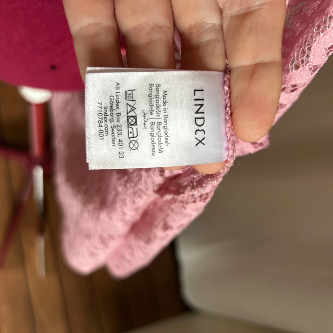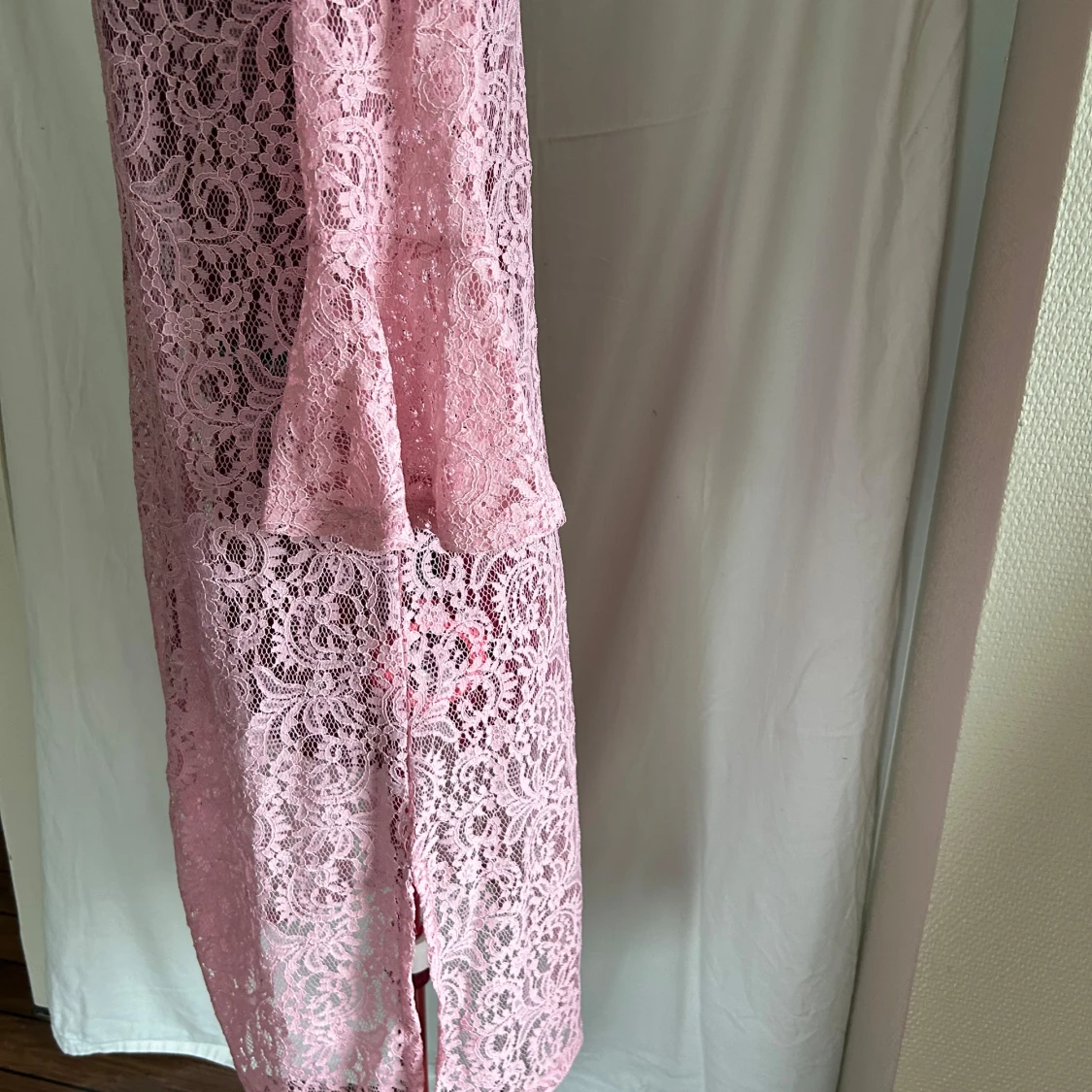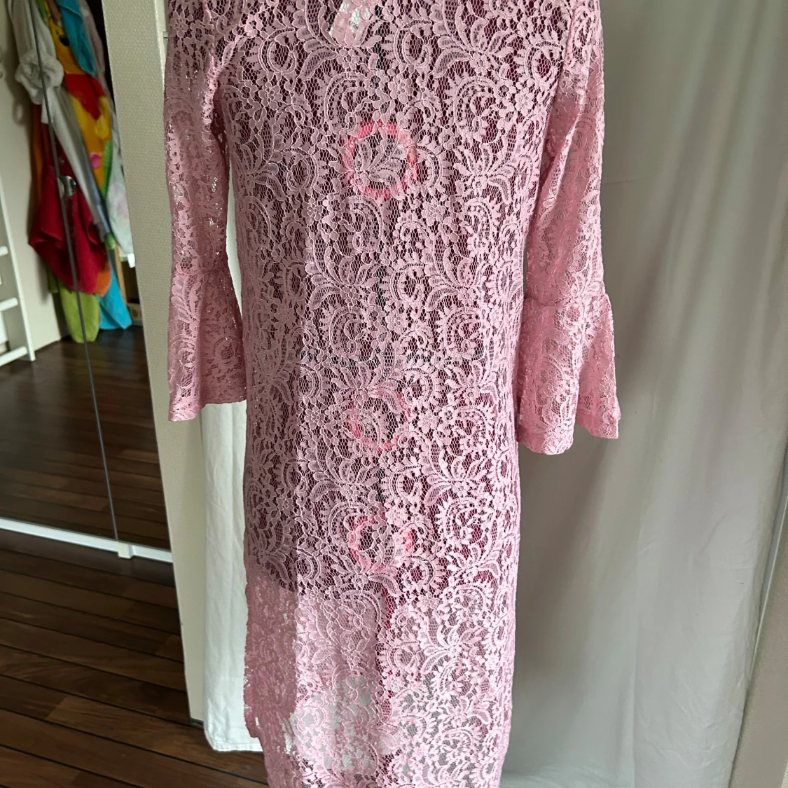 Superfin rosa lång tunika från Lindex i spets med trekvartsärmar och utsvängda ärmslut. Klänningen är helt i spets med blommigt mönster och har en rak passform. Perfekt för dig som vill sticka ut med en romantisk vibe.