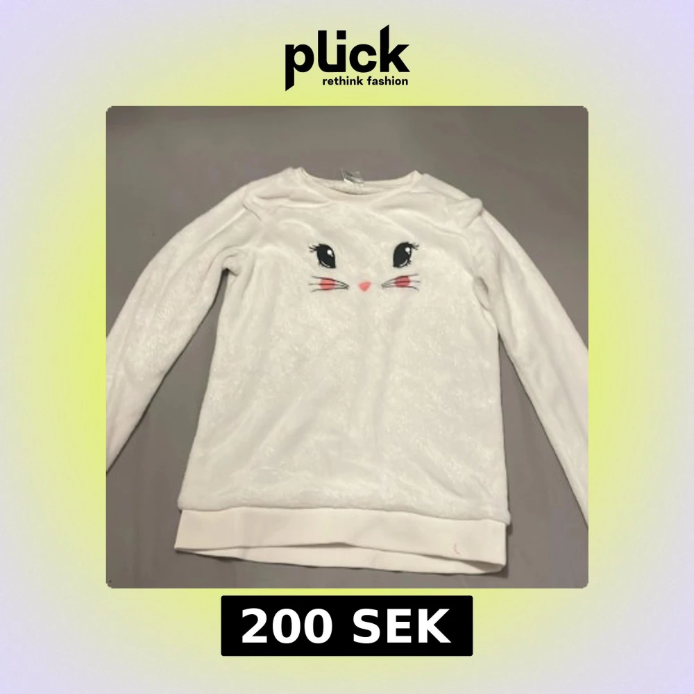 Säljer en söt vit långärmad tröja från Lindex med ett gulligt kaninansikte på framsidan. Tröjan har en mjuk och glittrig yta som ger en extra touch. Perfekt för den som älskar djurmotiv! 🐰✨