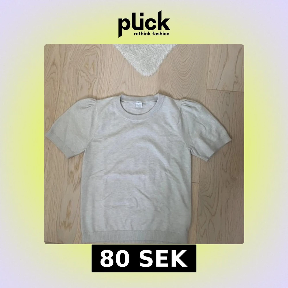 Säljer en ljusbeige stickad topp från lindex med korta puffärmar och rund hals. Materialet är mjukt och lätt, perfekt för vår och sommar. Enkel och stilren design som är lätt att matcha med olika outfits.