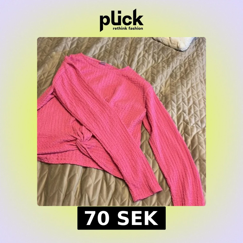 Säljer en rosa långärmad topp från Lindex i storlek 170. Toppen har en crinklad struktur och en snygg knutdetalj framtill. Materialet känns lätt och stretchigt, perfekt för dig som vill ha något bekvämt men ändå trendigt.