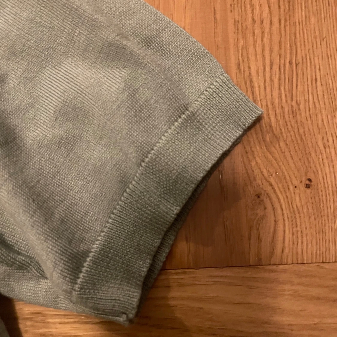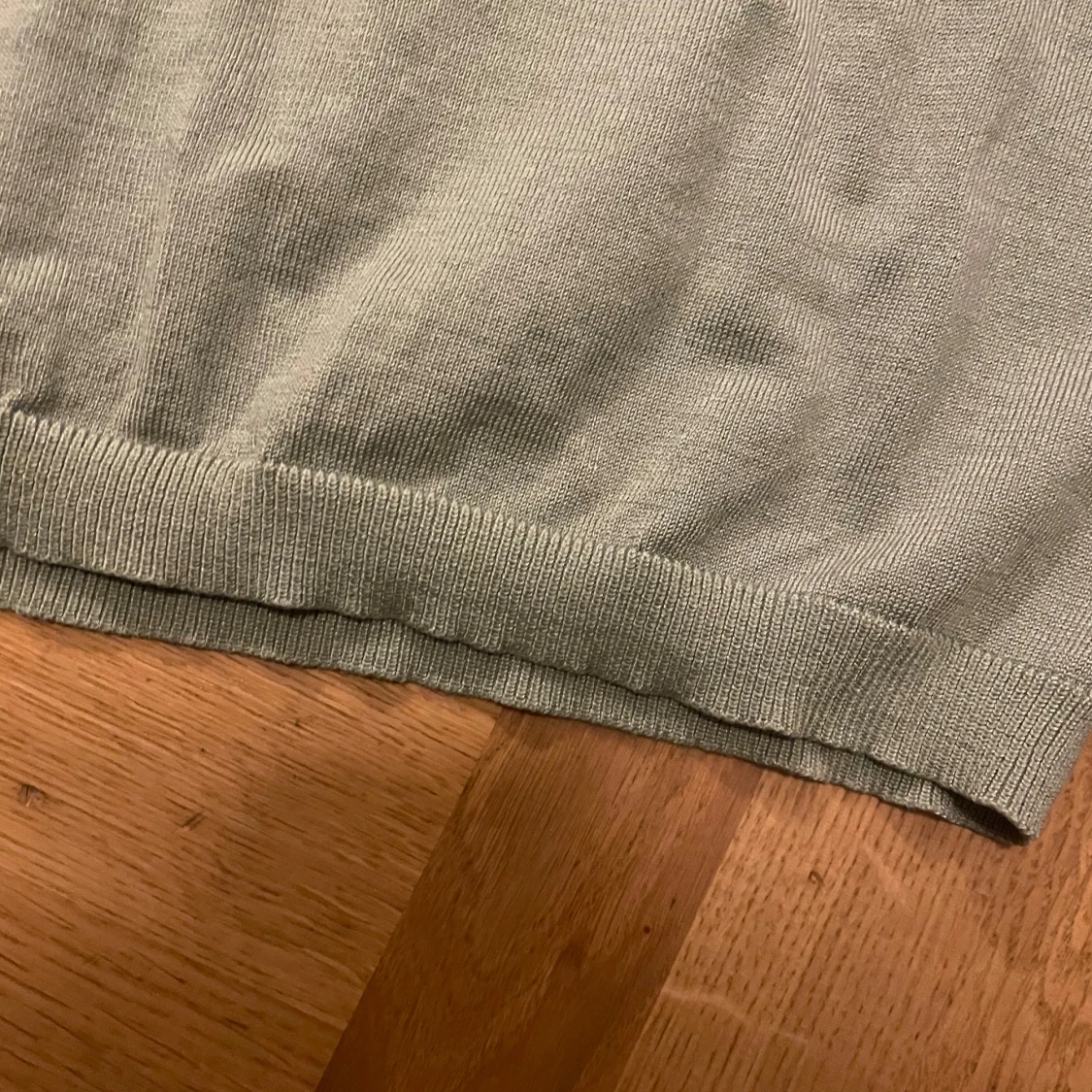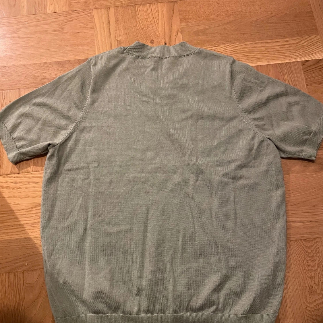 Säljer en ljusgrön stickad tröja från Lindex med korta ärmar och rund halsringning. Tröjan har ribbade muddar vid ärmslut, hals och nederkant. Perfekt för lager-på-lager eller sommarens svalare dagar.