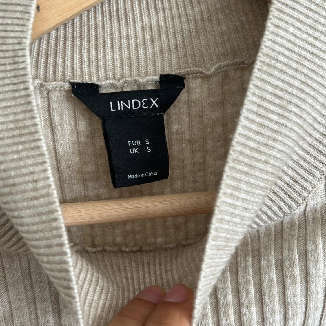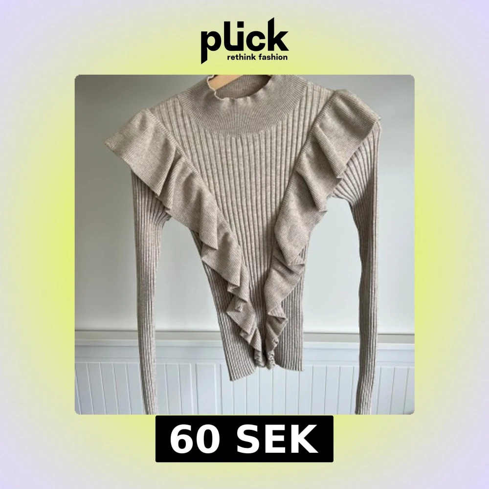 Säljer en beige ribbad tröja från Lindex med långa ärmar och snygga volangdetaljer framtill. Tröjan har hög hals och är perfekt för dig som gillar en trendig och stilren look. Passar till många olika outfits! Priset går att diskutera