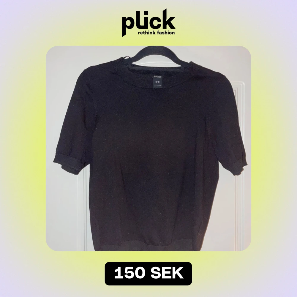 Säljer en stilren svart tröja från Lindex i storlek XS. Tröjan har korta ärmar och är perfekt för både vardag och fest. Den är i bra skick och passar till alla tillfällen. Enkelt att matcha med olika outfits!