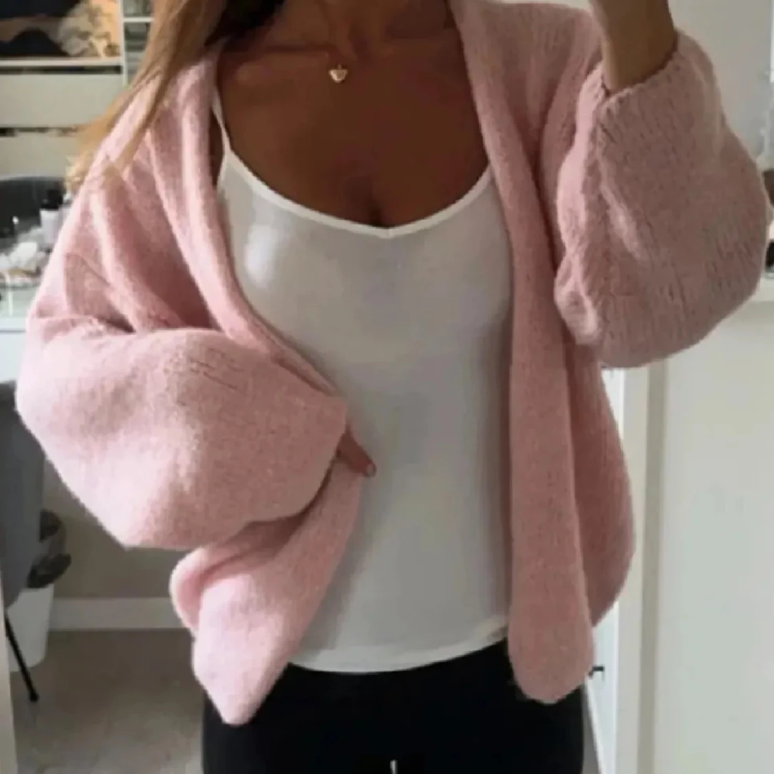 Stickad rosa kofta från Lindex som inte kommer till användning. Använd 3 gånger. Slutsåld och nypris 399kr