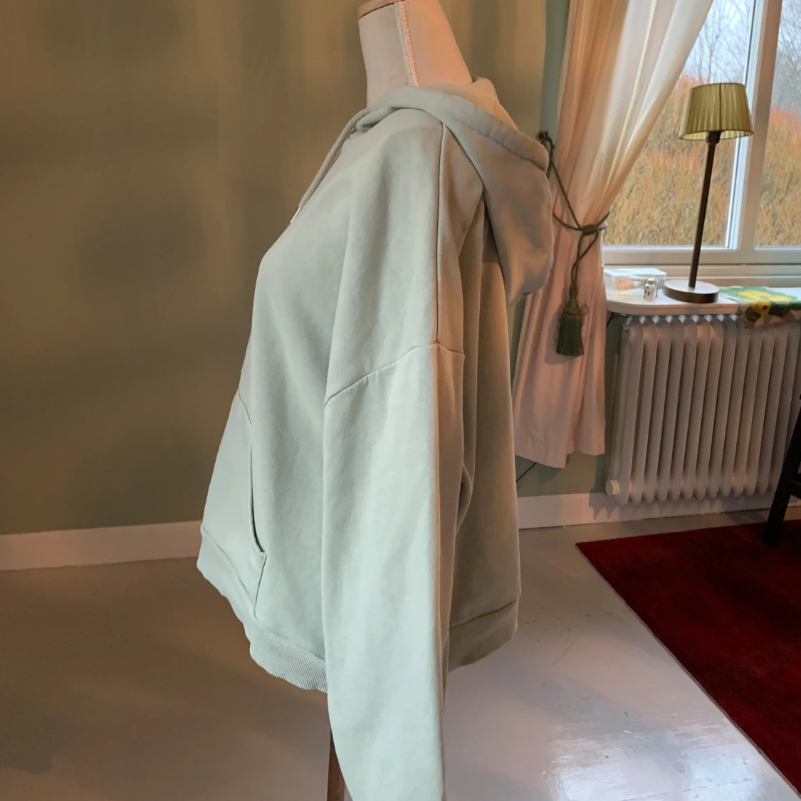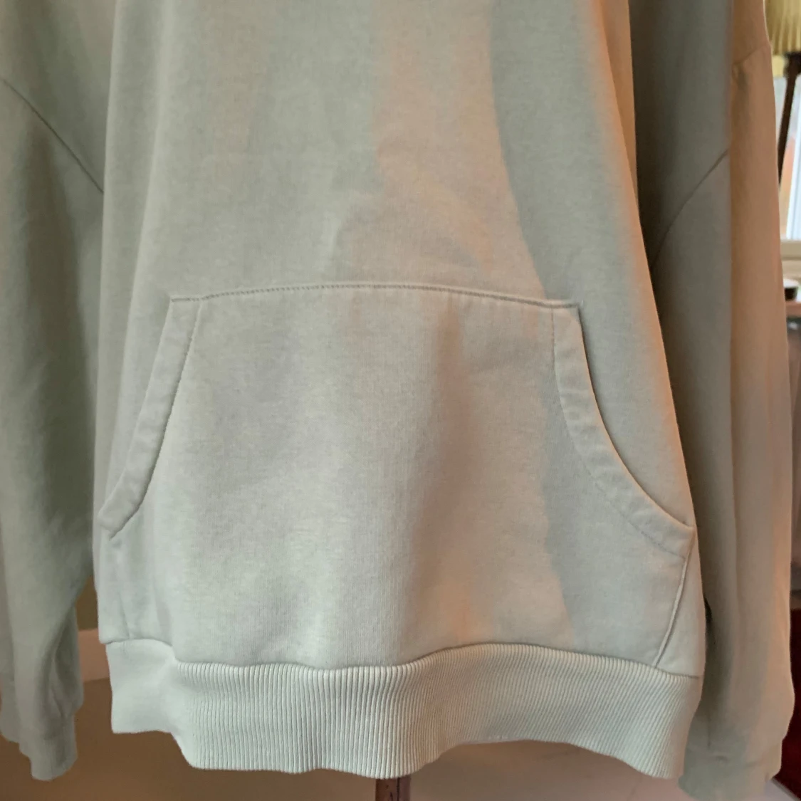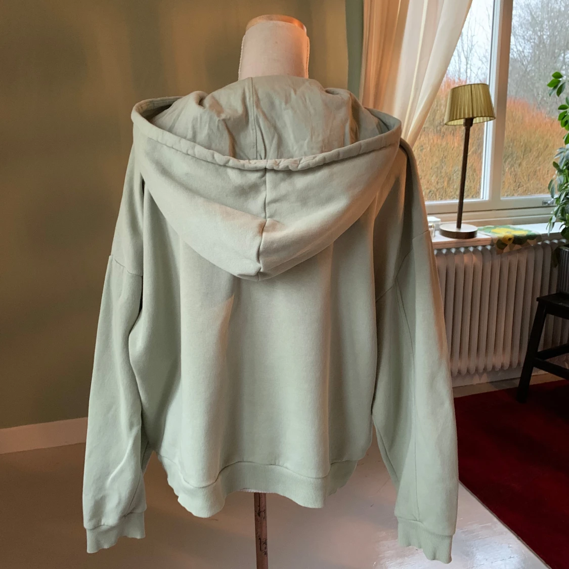 Säljer en pastellgrön hoodie från Lindex i storlek L. Den har en klassisk design med en stor ficka framtill och justerbar huva med snören. Perfekt för en avslappnad stil. Tröjan är i fint skick utan noppror och fläckar
