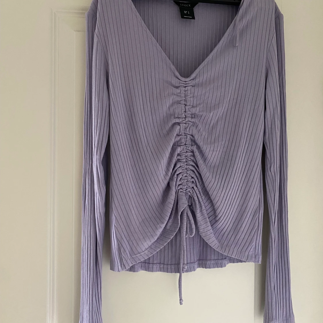 Lila, ribbad tröja från Lindex i storlek S. Använd endast en gång, säljer pga för liten