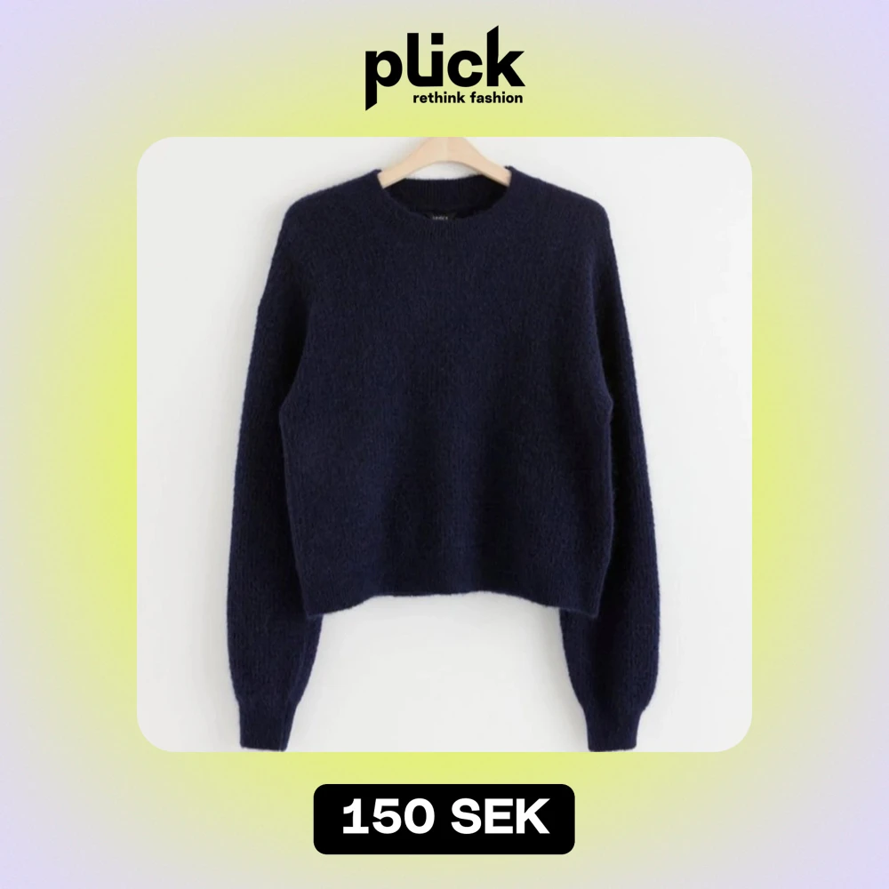 Säljer en supermysig mörkblå stickad tröja, använd fåtal gånger
