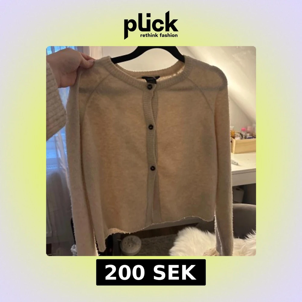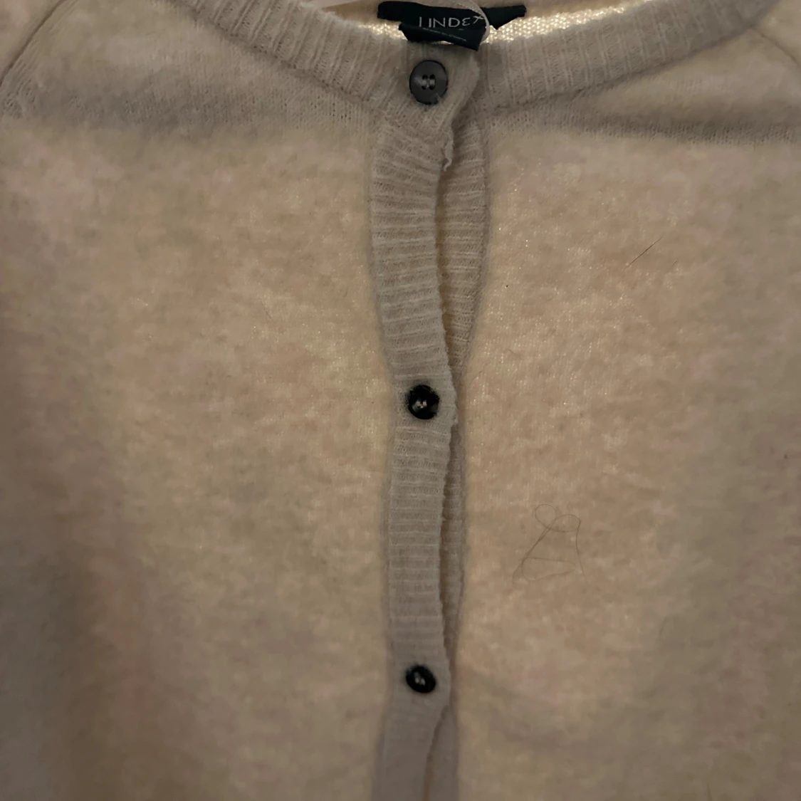 Supermjuk beige kofta från Lindex med rund halsringning och svarta knappar framtill. Långärmad och ribbade detaljer vid ärmslut och knappslå. Perfekt att slänga över en topp när det är kyligt ute.