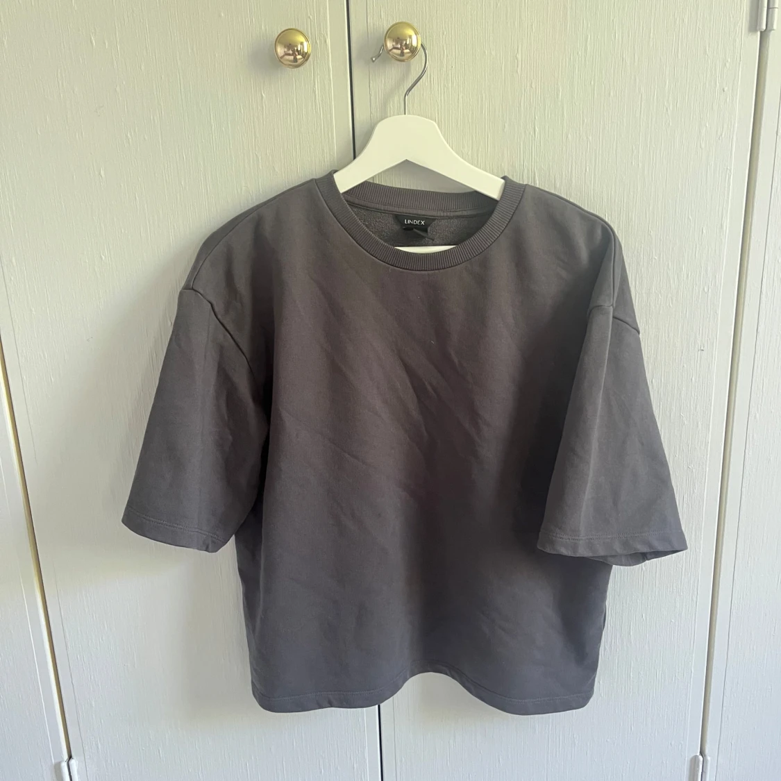 Säljer en mörkgrå oversized t-shirt från Lindex i storlek S. T-shirten har en klassisk rund halsringning och är tillverkad i mjuk bomull. Den har korta ärmar och en loose fit som ger en avslappnad vibe. Perfekt till jeans eller shorts för en chill look.💕Näst intill oanvänd