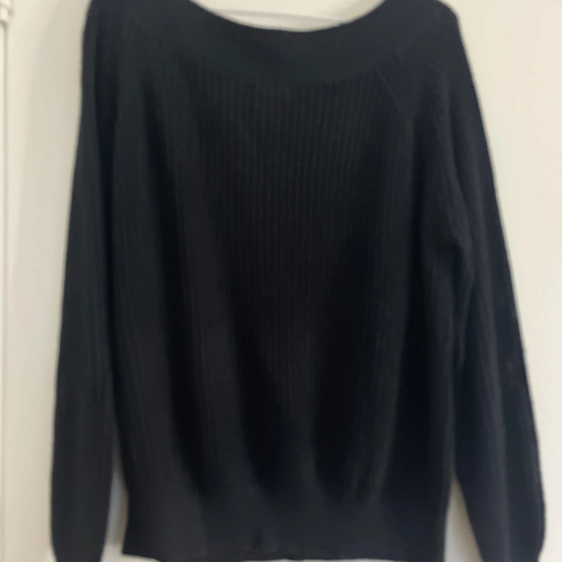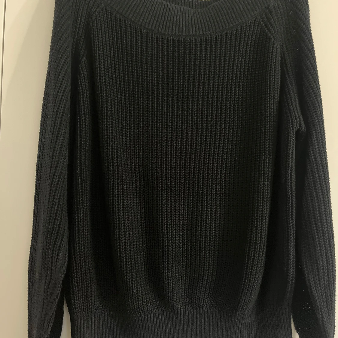En enkel svart stickad tröja med rund halsringning och långa ärmar, ifrån Lindex i storlek M men väldigt pösig!