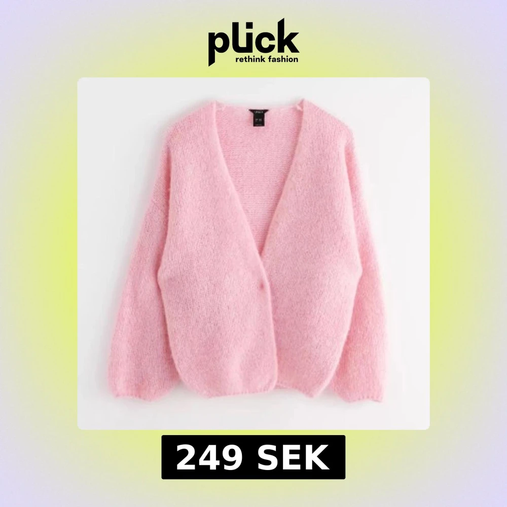 Mysig rosa stickad kofta från Lindex. Den har en avslappnad passform med långa ärmar och en öppen front. Perfekt för att hålla sig varm och stilren under kyligare dagar.