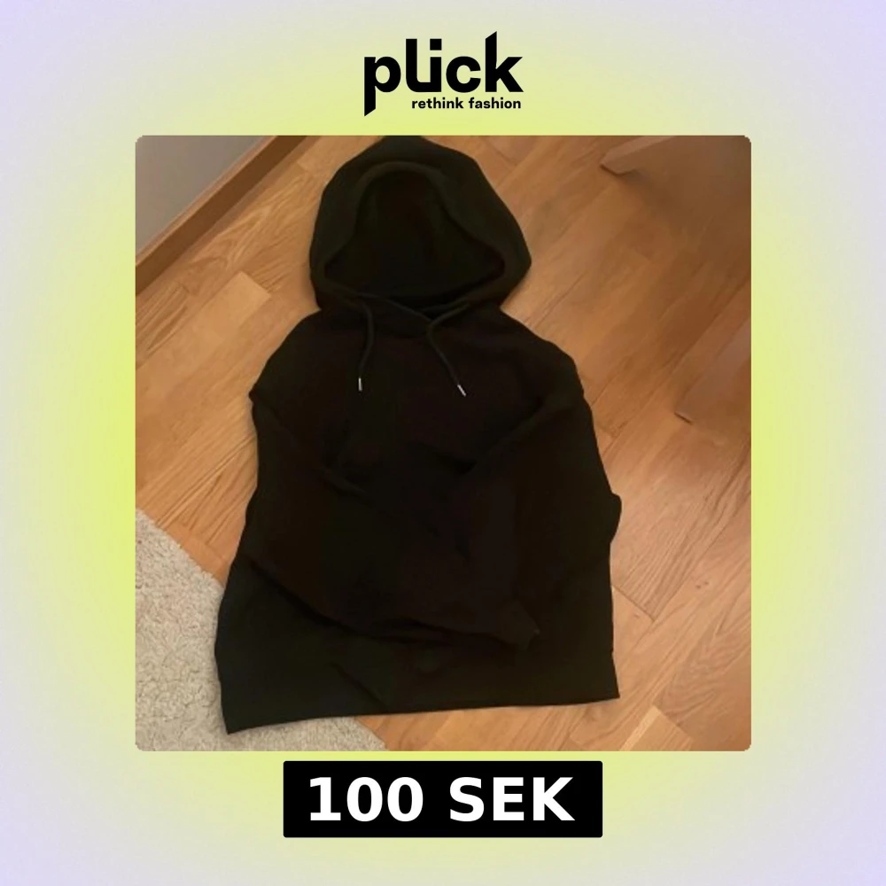 En svart hoodie från Lindex med klassisk huva och snörning. Tröjan har lång ärm och är tillverkad i mjukt material, perfekt för chill dagar. Enkel och stilren design utan tryck eller mönster. Andvänd ett fåtal gånger men färgen har gått bort lite i tvätten