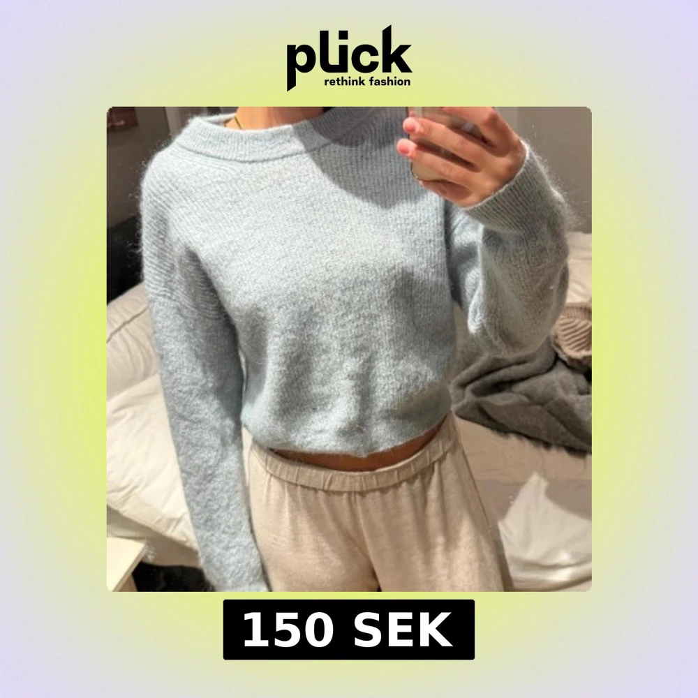 Supermysig ljusblå stickad tröja från Lindex i storlek S. Tröjan har en croppad passform, rund halsringning och långa ärmar. Perfekt för lager-på-lager och chill dagar. Mjuk och fluffig känsla som gör den extra skön att bära.
