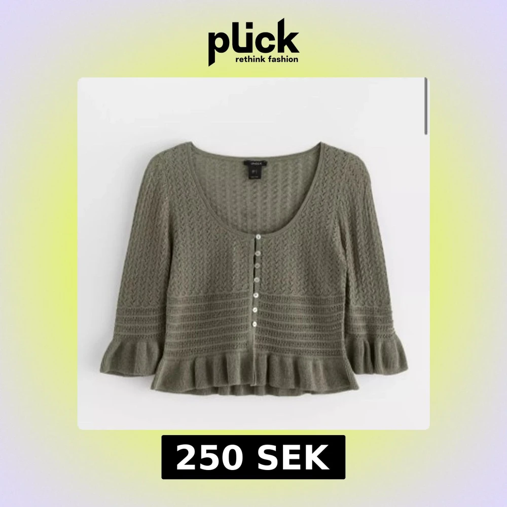 Köpt för 400 kr🥰🥰Supersöt olivgrön stickad kofta från Lindex med dekorativa knappar framtill och volangdetalj vid ärmslut och nederkant. Koftan har trekvartsärm och ett fint mönster i stickningen. Perfekt att styla till både jeans och kjol.