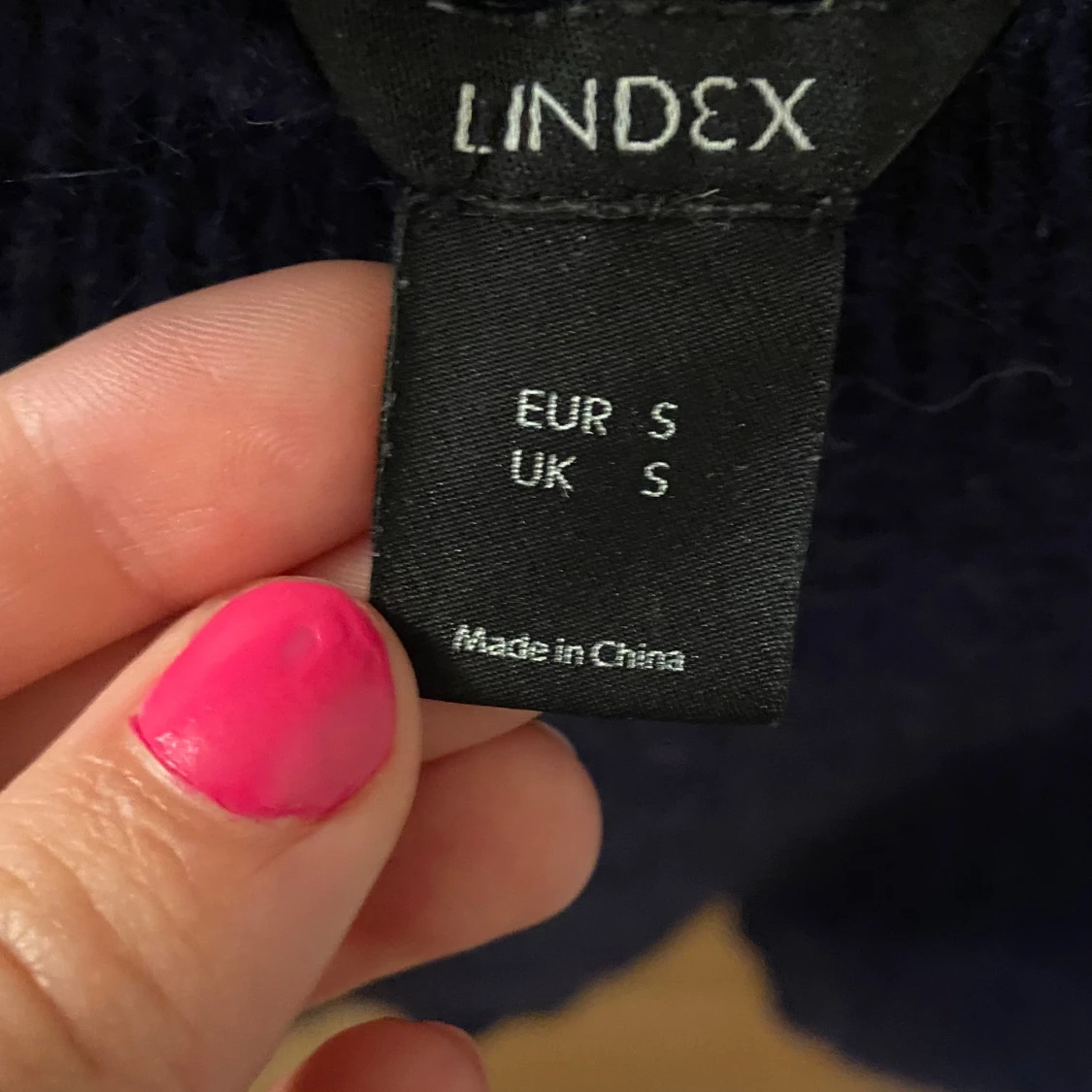 Mysig mörkblå stickad tröja från Lindex i storlek S. Tröjan har en enkel och klassisk design med lång ärm och rund hals. Perfekt för kyliga dagar när du vill vara både bekväm och snygg.