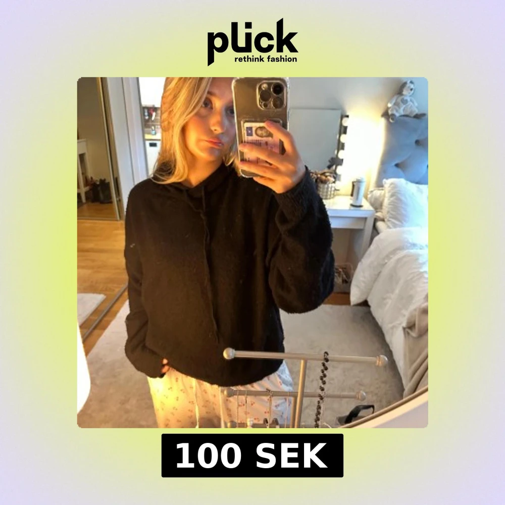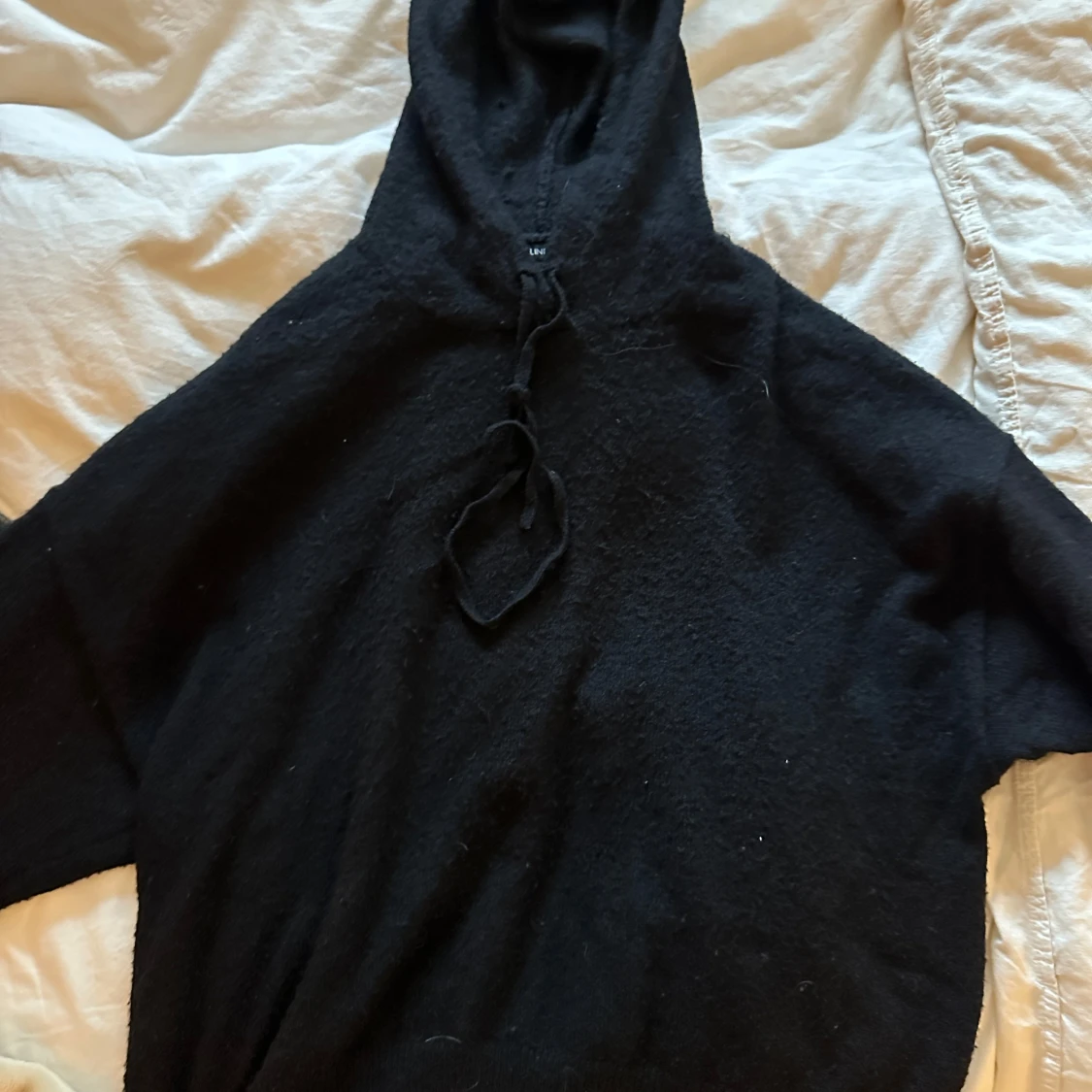 Mysig svart stickad hoodie. Tröjan har en loose passform och långa ärmar, perfekt för skolan. Enkel och stilren design som passar till det mesta.💞❤️
