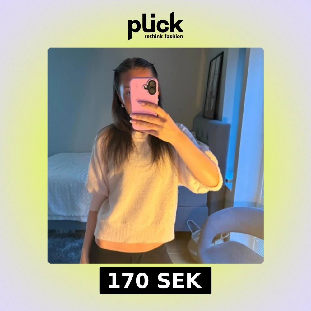 Jättesöt ljusrosa stickad tröja med croppad passform och halvlånga ärmar. Tröjan har en rund halsringning och ribbade muddar vid ärmslut och nederkant. Använd därav nopprig💕