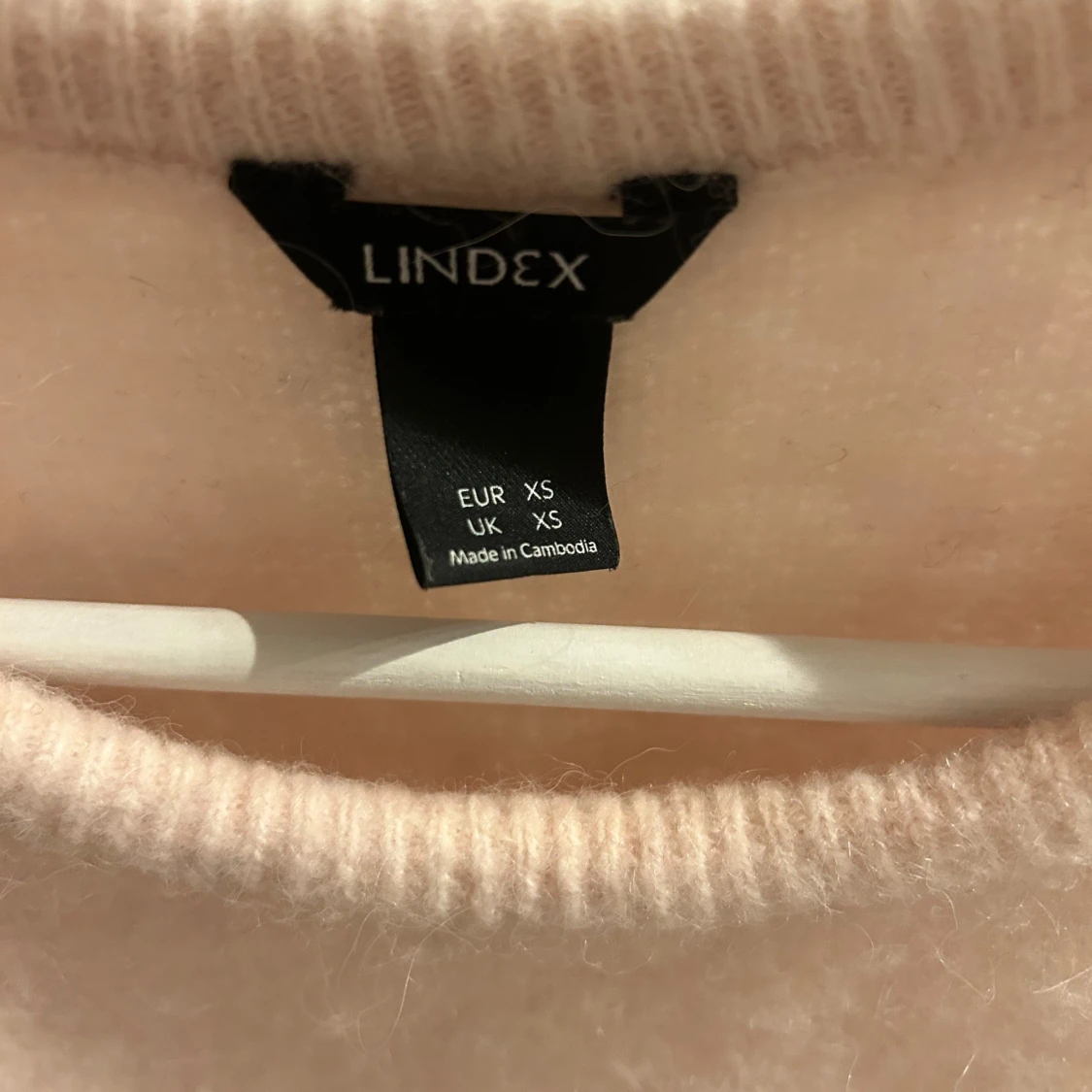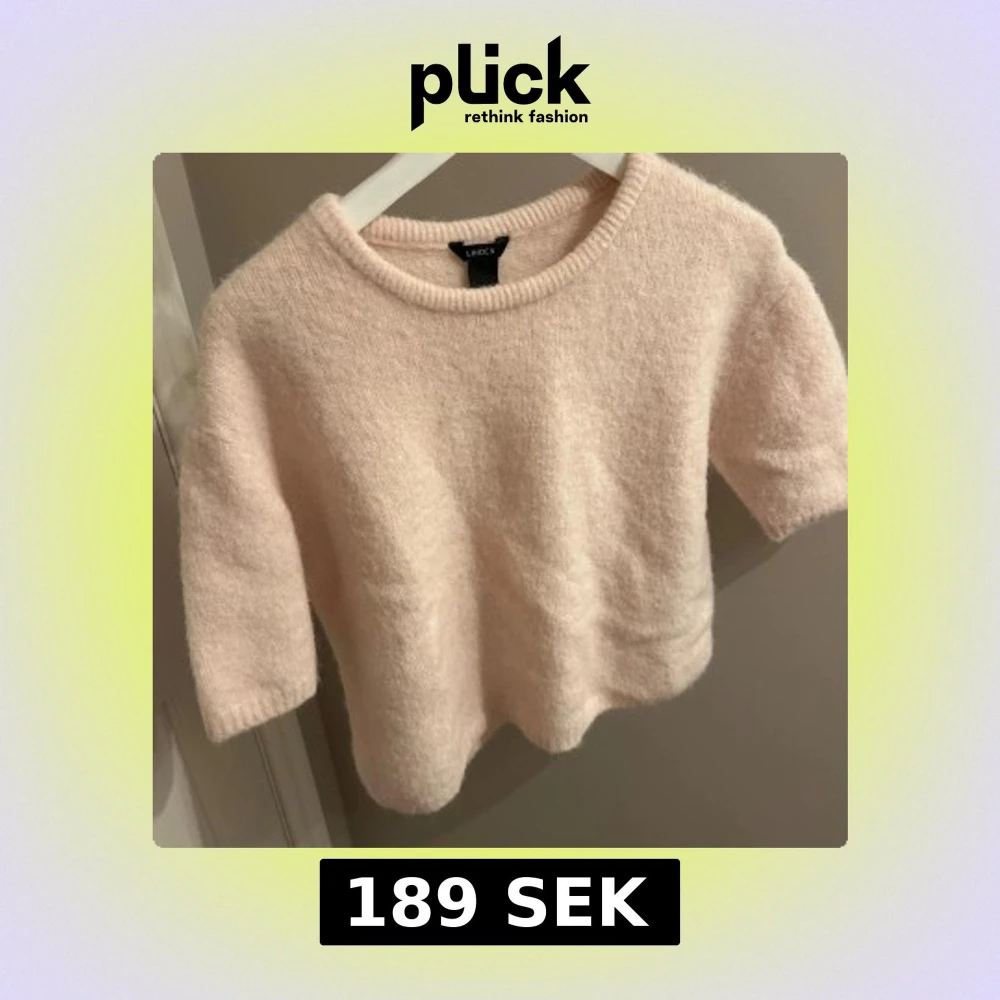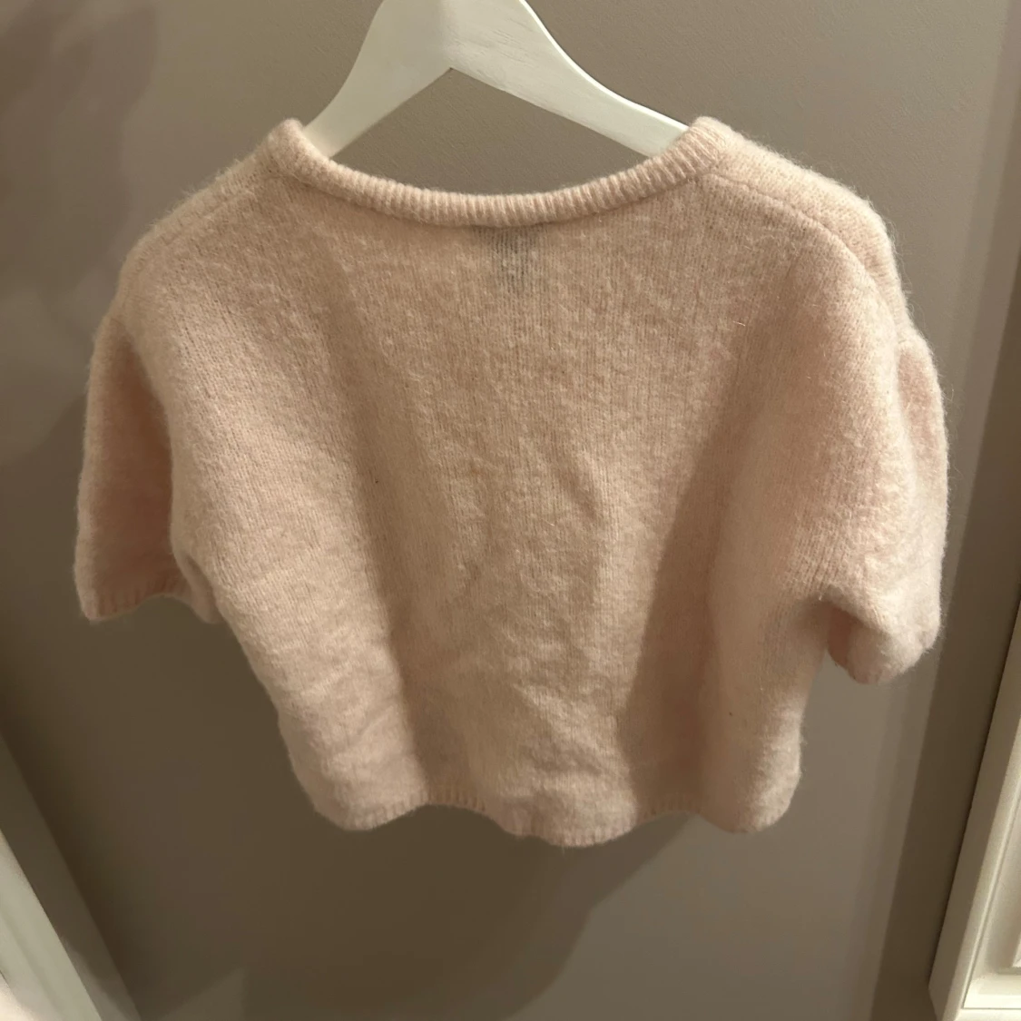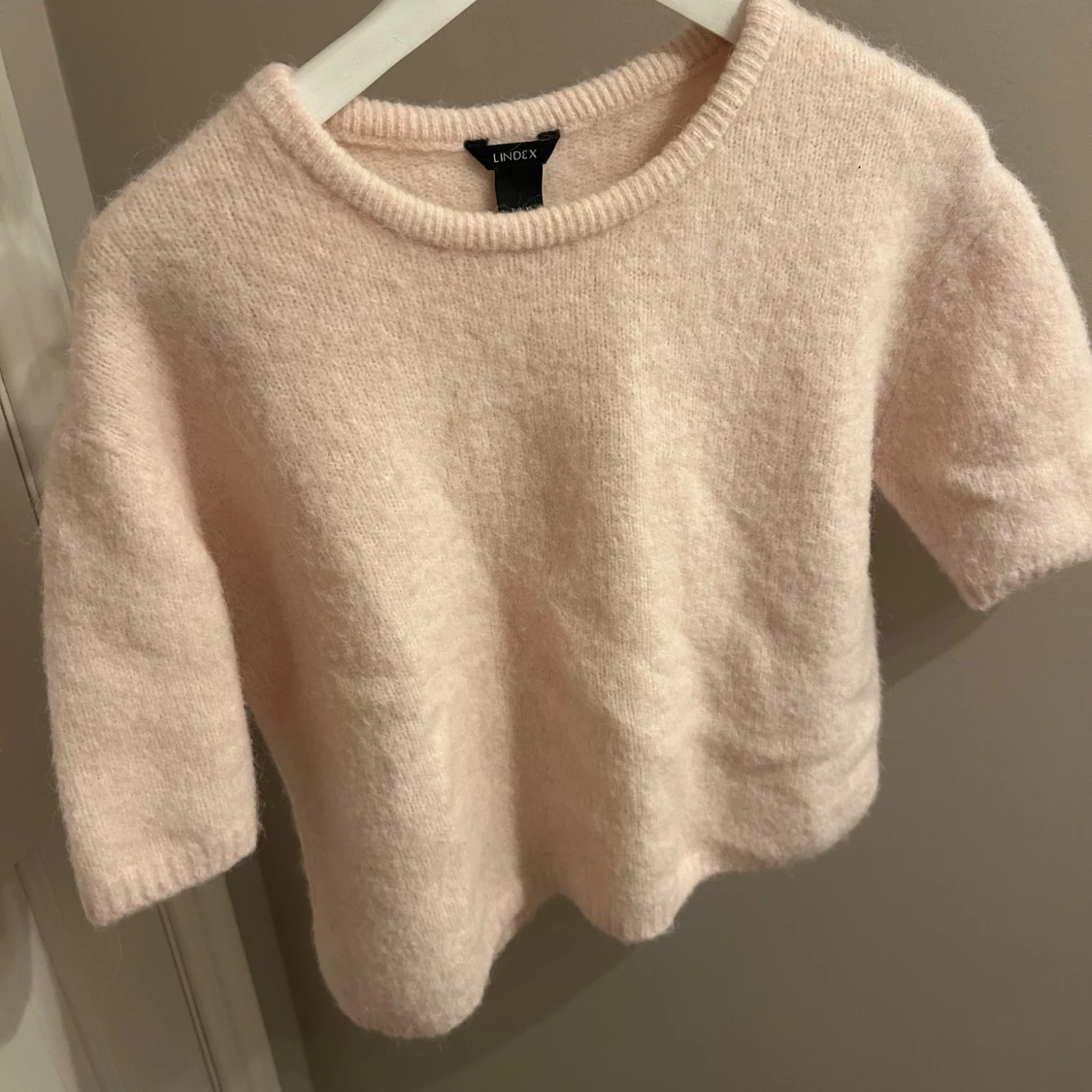 Ljusrosa stickad tröja från Lindex. Tröjan har korta ärmar och rund halsringning