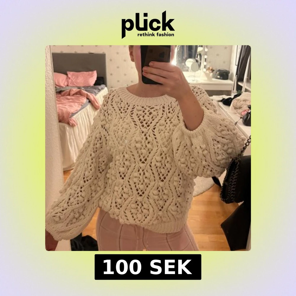 Säljer en superfin vit stickad tröja med grovt hålmönster och balong ärmar. Tröjan har en rund halsringning. Den är oversized och riktigt mysig att bära under kyliga dagar.
