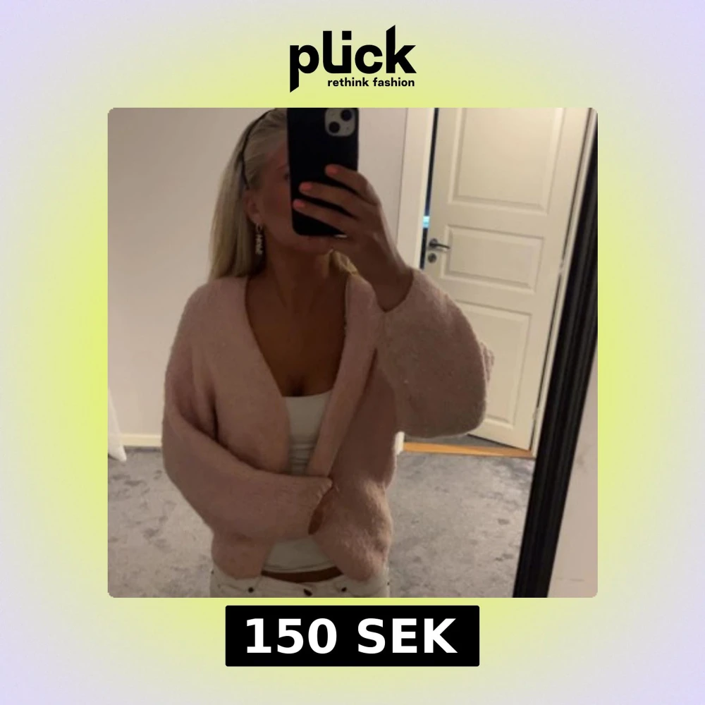 Supermysig ljusrosa stickad kofta från Lindex med oversized passform och djup v-ringning. Perfekt att slänga över ett linne eller t-shirt. Koftan har långa ärmar och är riktigt fluffig och skön. Lite nopprig efter tvättar