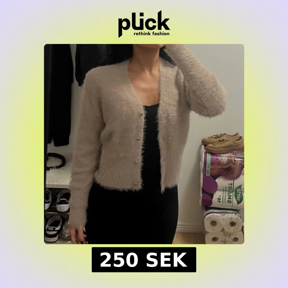 Supermjuk och fluffig ljusrosa kofta med v-ringning och dekorativa knappar framtill. Koftan har lång ärm och en lite croppad passform som ger en trendig look. Perfekt att slänga över en topp för en mysig och stilren outfit.
