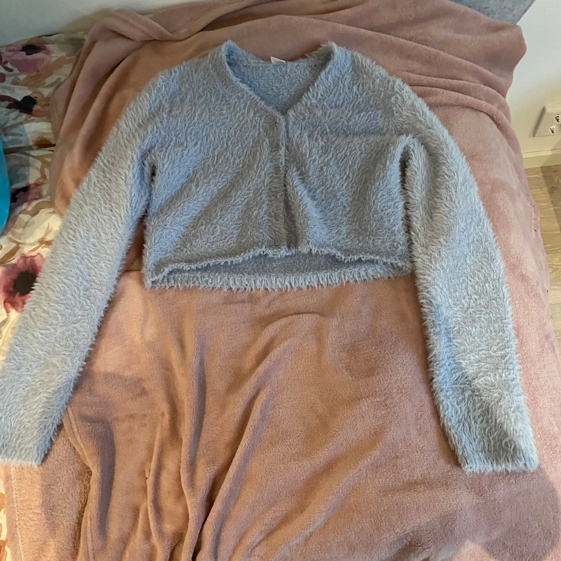 Säljer en supermysig ljus blå fluffig kofta. Den har långa ärmar. Perfekt för höst och vinter när man vill vara både varm och stilren. Koftan är i mycket bra skick och passar perfekt till både vardag och fest. 🩶