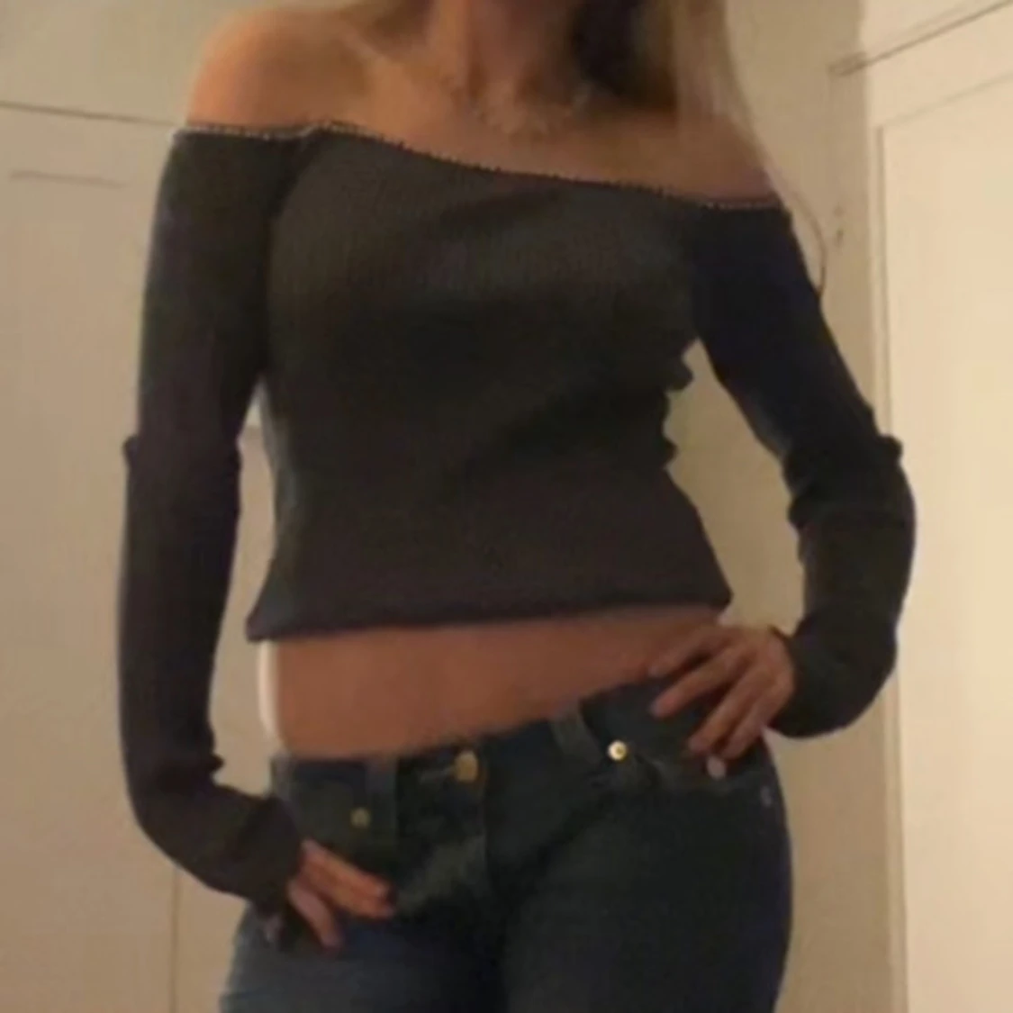 Säljer min helt nya tröja i storlek S från Hm med lappen kvar! Den är ribbad med ”pärlor” på kanten. Nypris 300kr