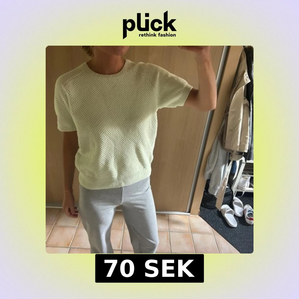Superfin ljus stickad tröja från KappAhl i storlek M. Tröjan har korta ärmar, rund halsringning och ett strukturerat mönster.