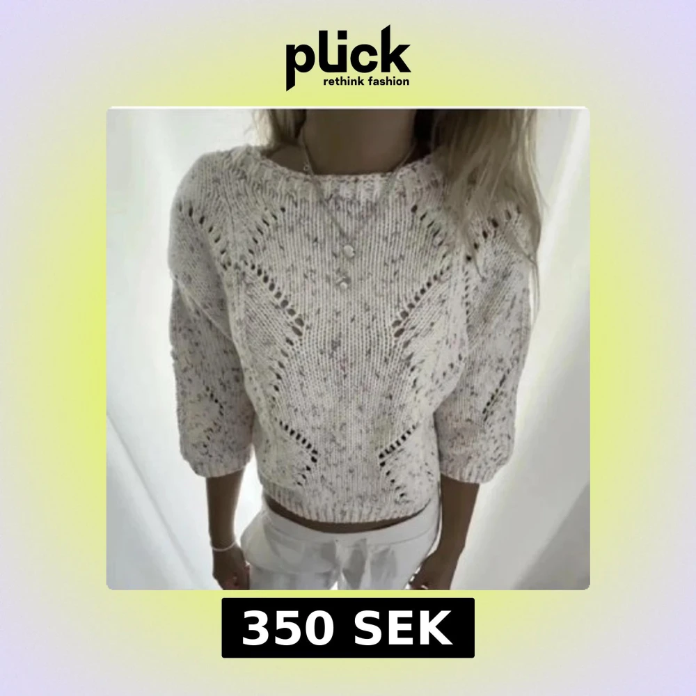 Superfin ljus stickad tröja från Lindex med coola hålmönster och inslag av rosa, grått och gult. Tröjan har trekvartsärmar. Perfekt till jeans eller kjol för en chill look.