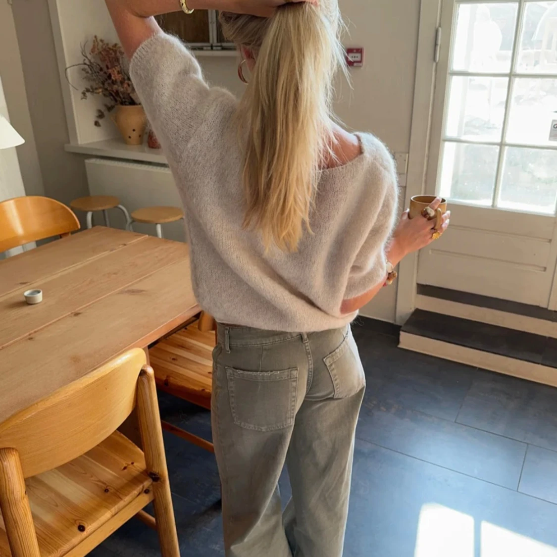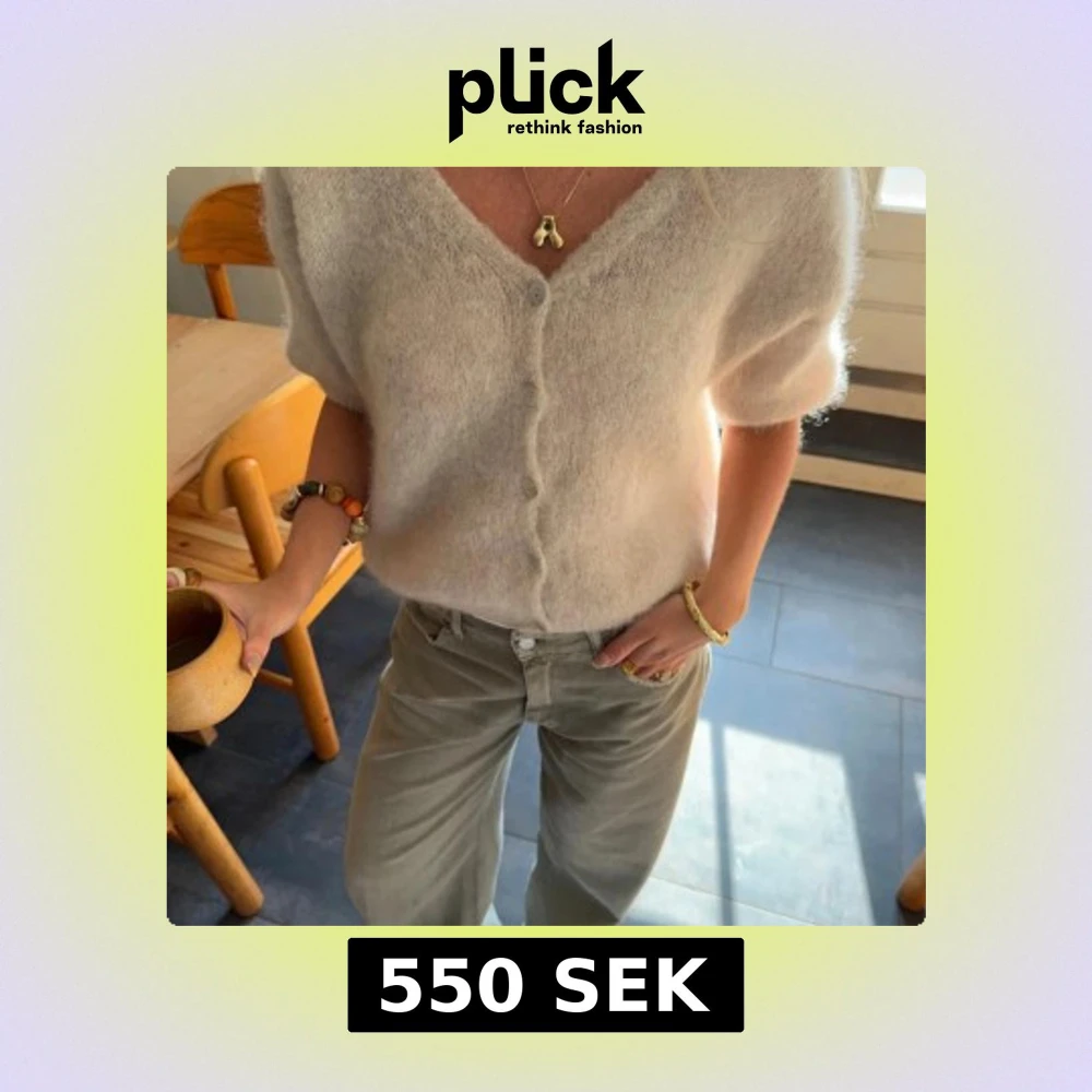 Supermjuk och fluffig ljusbeige kofta med v-ringning och korta ärmar. Aldrig använt alls ❤️