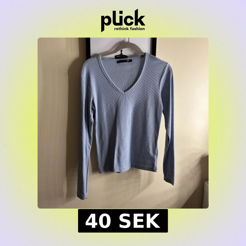 Säljer en ljusblå ribbad tröja från 157 med v-ringning. Tröjan har långa ärmar och är perfekt för en stilren look. Passar bra till både jeans och kjol. Perfekt för vår och sommar!