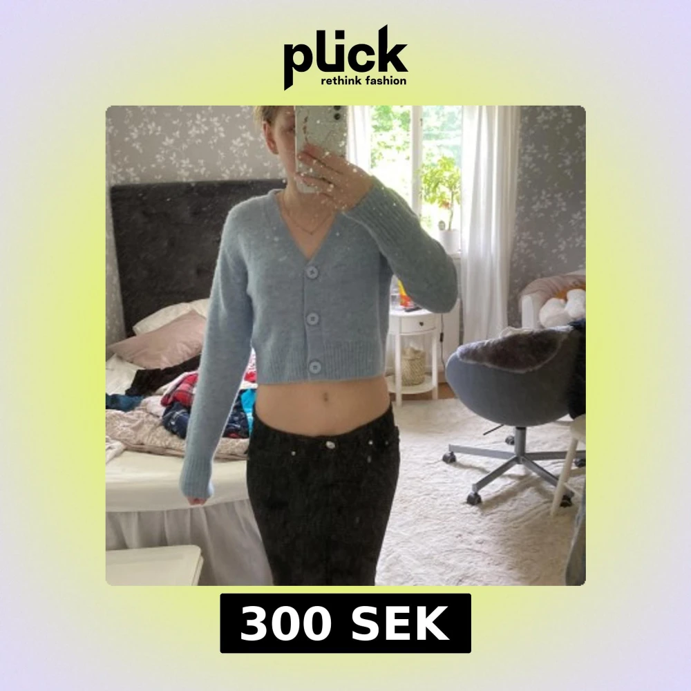 Superfin ljusblå croppad kofta från Carin Wester med stora knappar framtill och v-ringad hals. Stickad i en mjuk mix av alpacka, ull och syntet. Perfekt till jeans eller kjol för en chill look. Super skön och jättemysig.