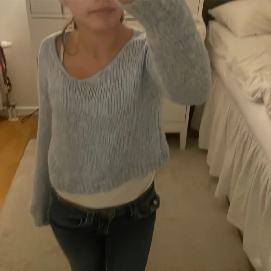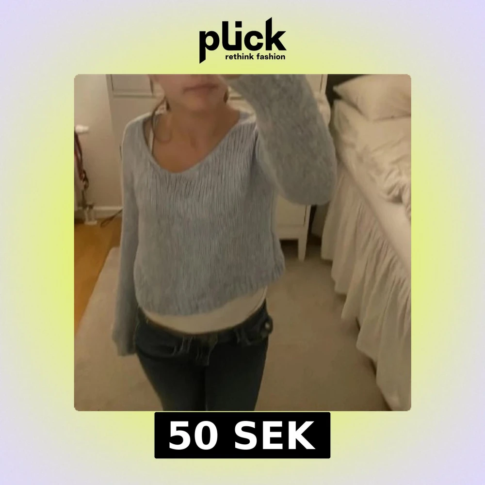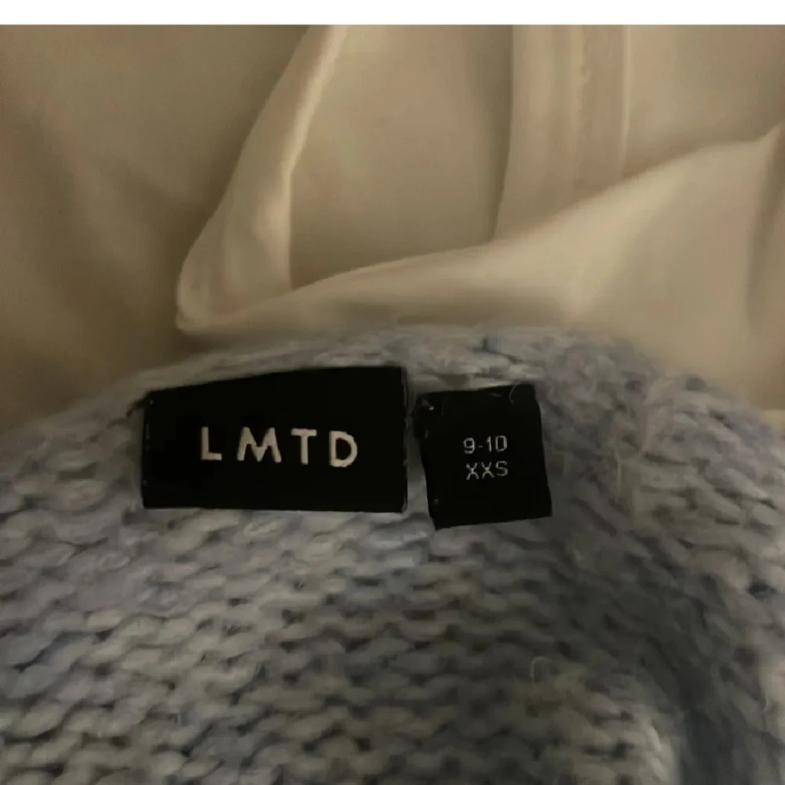 Supermysig ljusblå stickad tröja från LMTD. Tröjan är lite urringad och kort💗