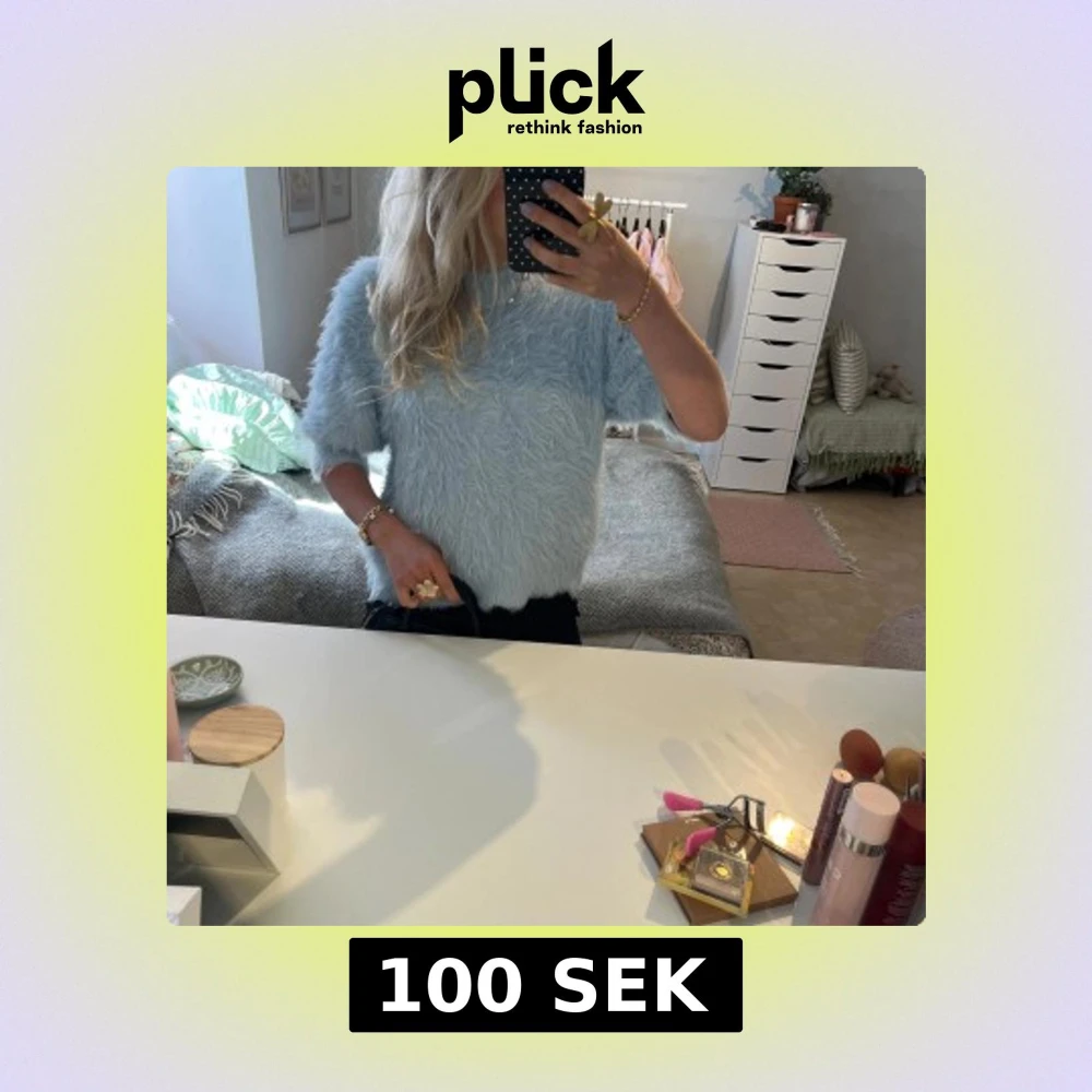 Supermjuk och fluffig ljusblå tröja från C.W med korta ärmar och rund hals. Tröjan har en oversized känsla och är gjord i ett pälsliknande, stickat material som ger en unik look. Perfekt för dig som vill sticka ut med en cozy vibe.