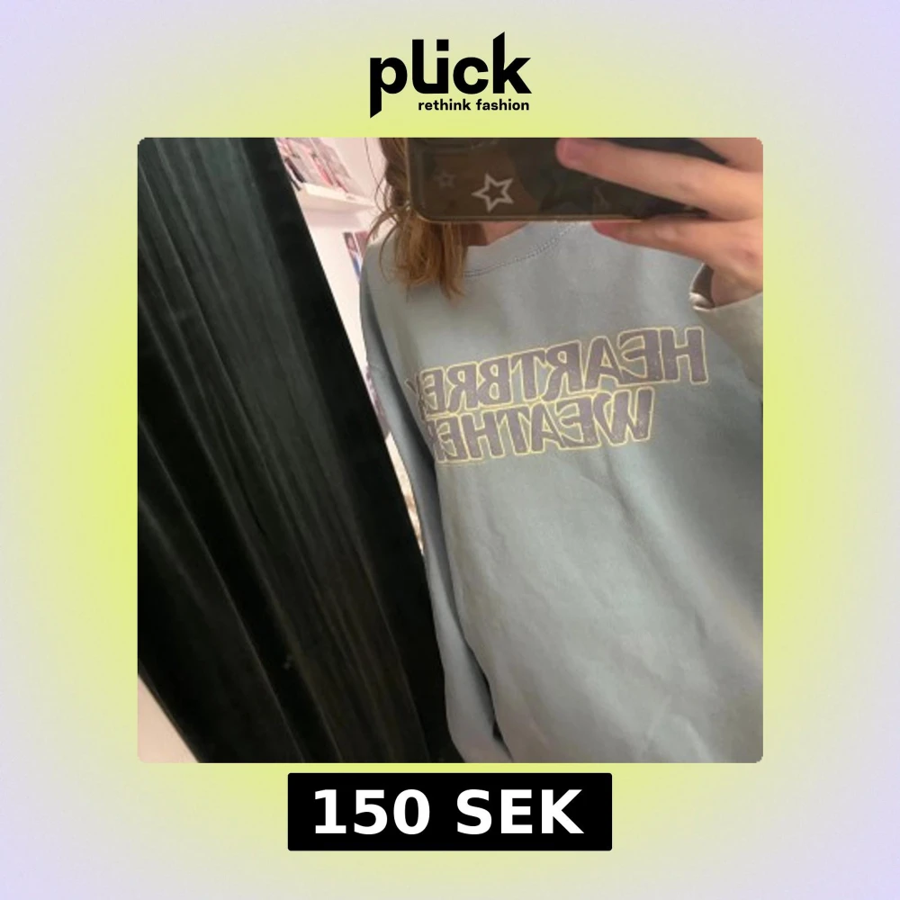 Ljusblå sweatshirt från Heartbreak Weather med tryck framtill i vitt och gult. Tröjan har en relaxed passform, rund hals och långa ärmar. Materialet är mjukt med 80% bomull och 20% polyester, perfekt för chill dagar.