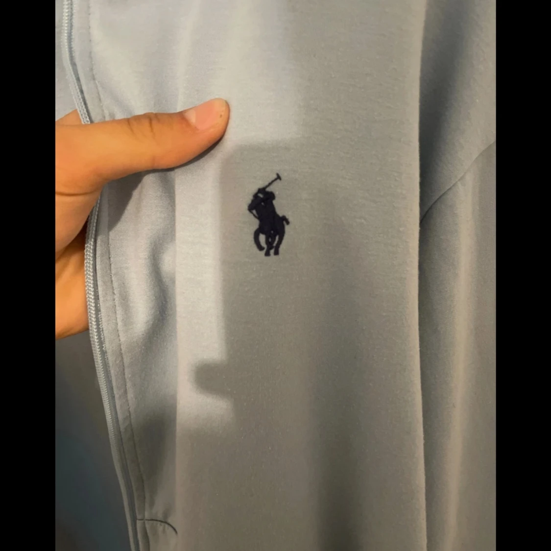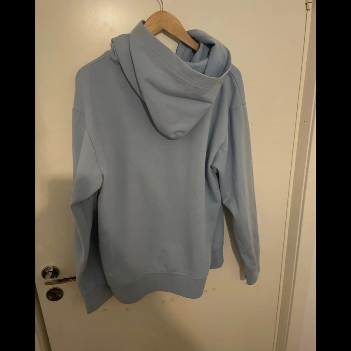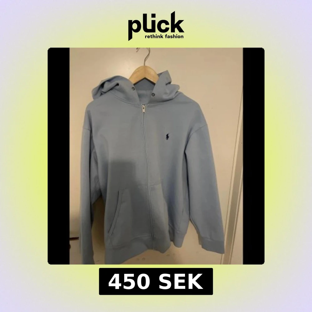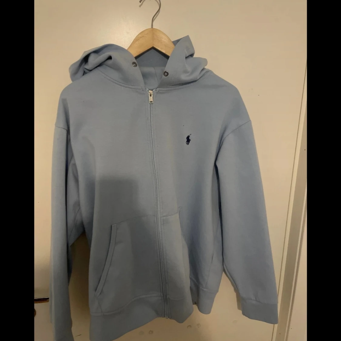 Säljer en ljusblå hoodie från Ralph Lauren i storlek M men lite mindre i storlek. Tröjan har huva, fickor framtill och är tillverkad i mjuk bomull. Perfekt för chill dagar eller när du vill ha en clean look. Mycket bra skick förutom ett litet hål längst ner på ärmen men inget som syns