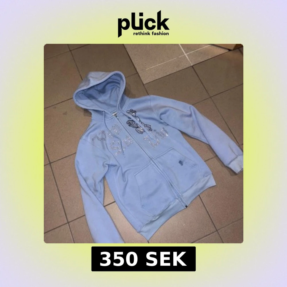 Säljer en ljusblå hoodie från Vonstudio med dragkedja och glittriga detaljer på framsidan. Tröjan har en mysig huva och långa ärmar. Perfekt för en avslappnad stil. 💙