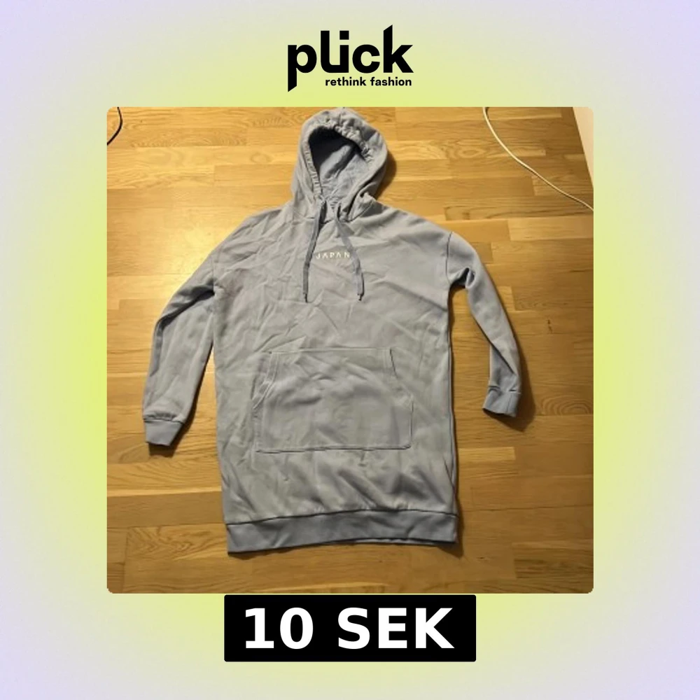 Säljer en ljusblå hoodie från FB Sister med ett stort koi-motiv och japansk text på ryggen. Hoodien har en känguruficka och justerbar huva med dragsko.