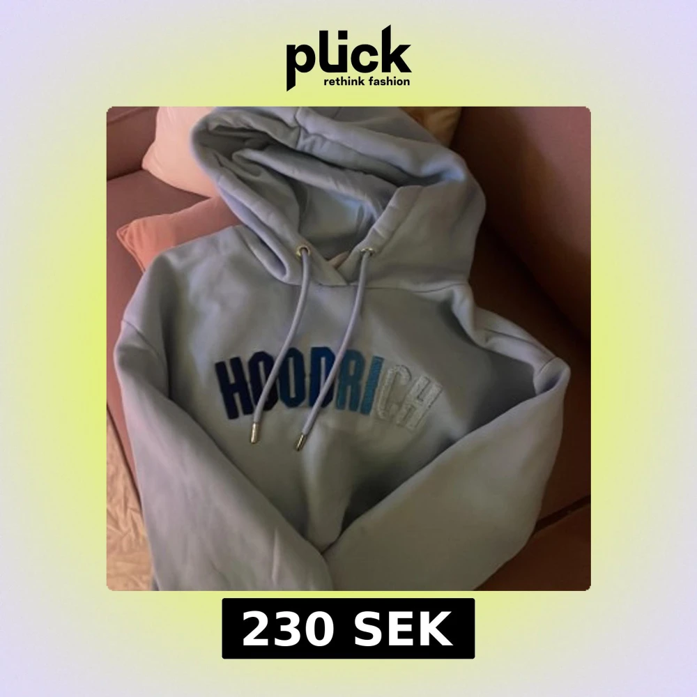 Snygg ljusblå hoodie från HOODRICH med broderad logga i olika blå nyanser och vitt framtill. Tröjan har huva med snörning. Går inte att få tag på denna modell som ny!!