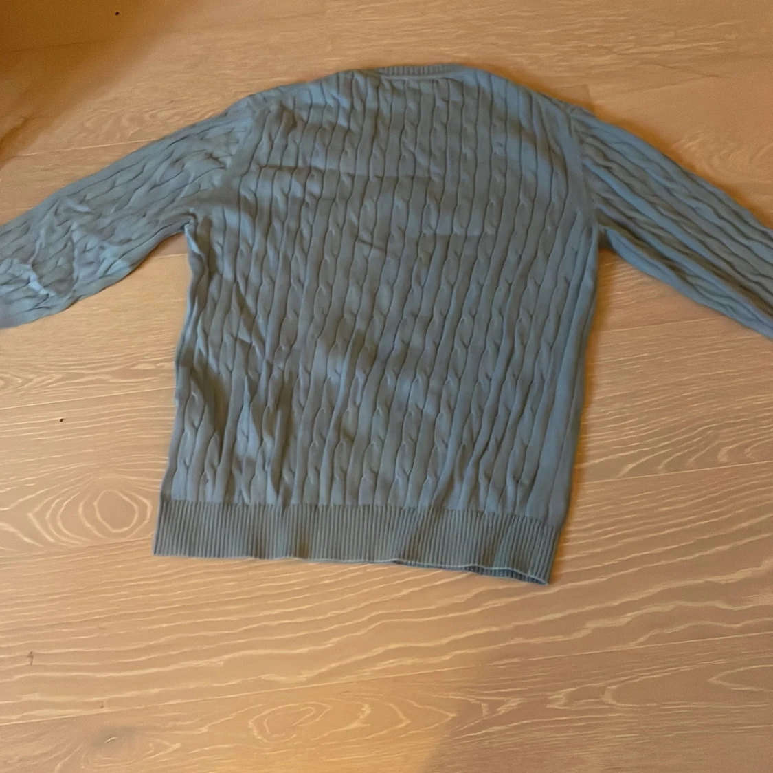 Snygg ljusblå kabelstickad tröja från Gant med rund hals och diskret broderad logga på bröstet. Tröjan har långa ärmar och ribbade muddar vid ärmslut och nederkant. Perfekt för dig som gillar klassisk och stilren look.