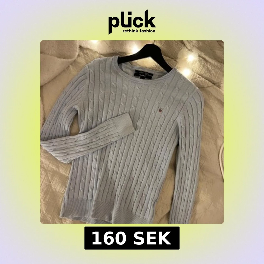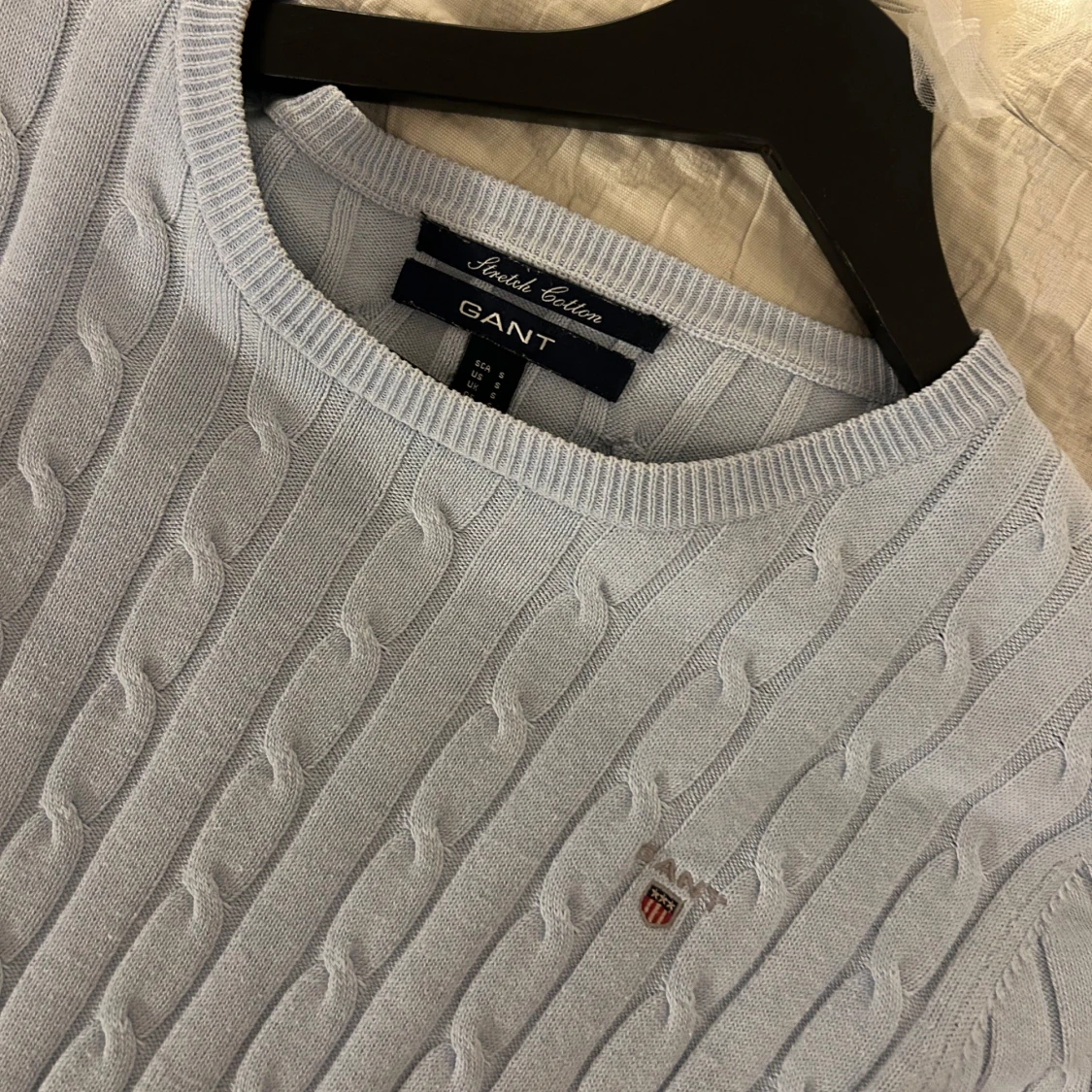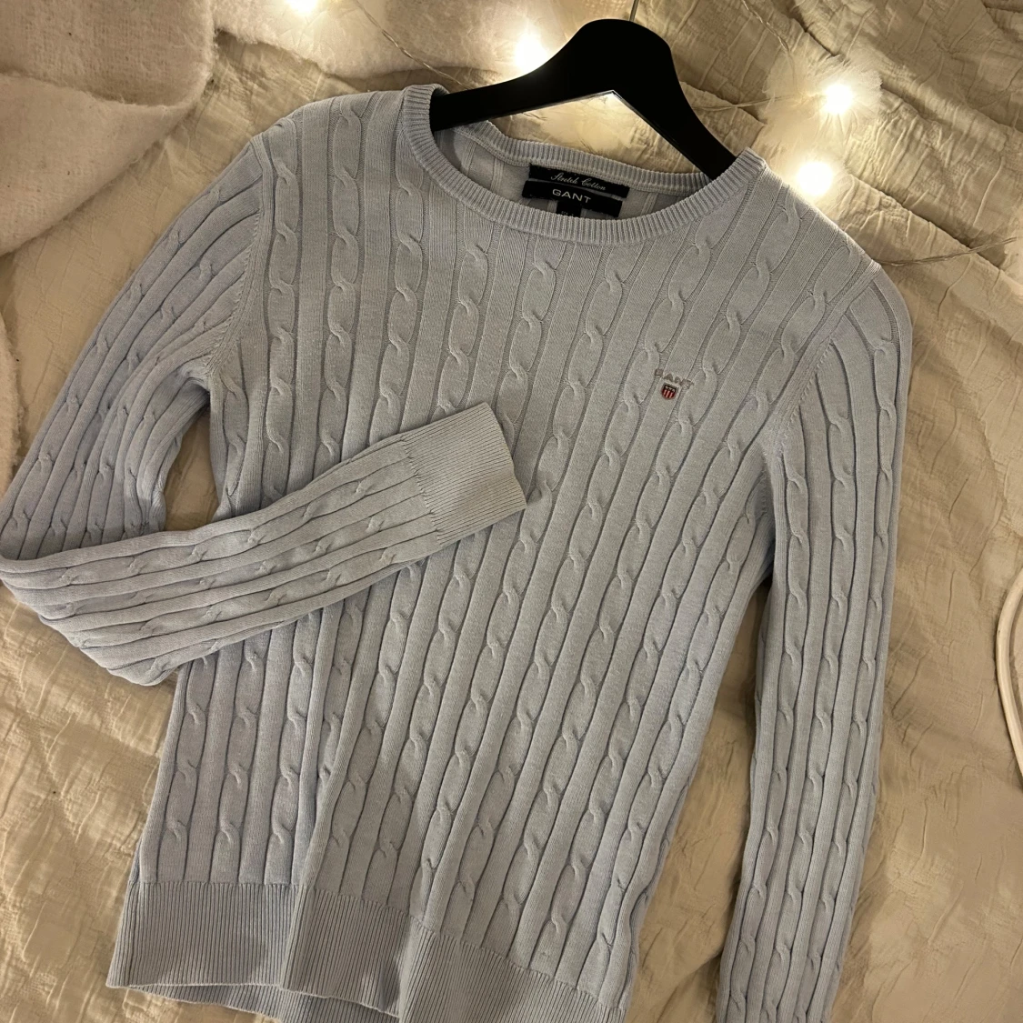Säljer en ljusblå kabelstickad tröja från GANT strl S 200. Mycket fint skick