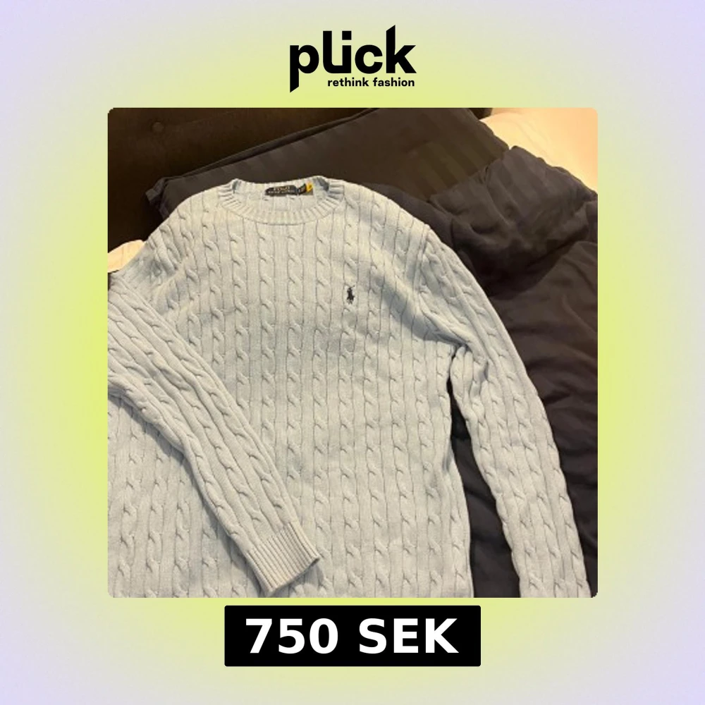Säljer en ljusblå kabelstickad tröja från Polo Ralph Lauren. Tröjan har rund halsringning, långa ärmar och den klassiska broderade loggan på bröstet. Tillverkad i mjuk bomull och perfekt för lager-på-lager under kyliga dagar. Ställ gärna frågor och pris kan diskuteras 😄