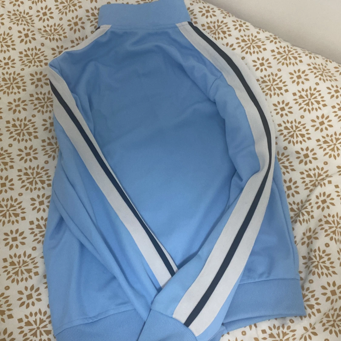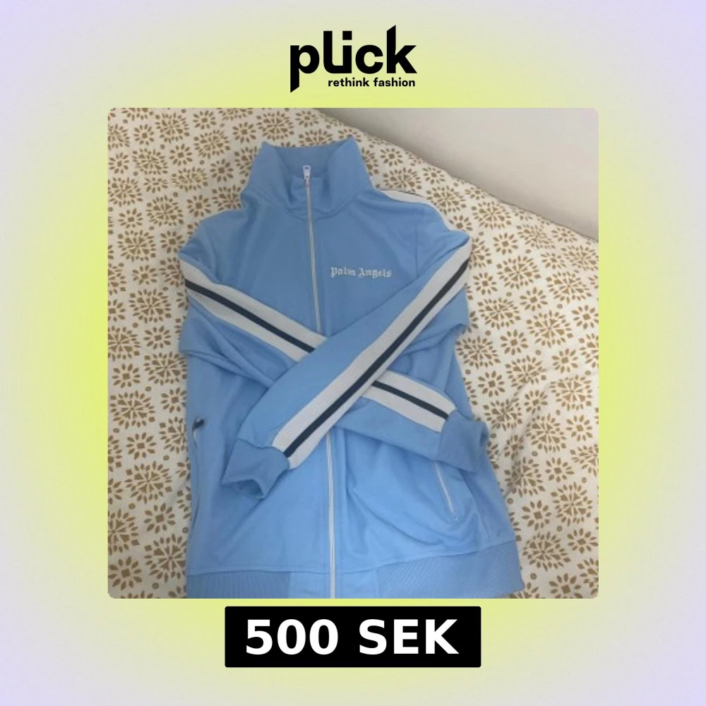 Säljer en snygg ljusblå kofta från Palm Angels. Koftan har en dragkedja framtill och vita samt svarta ränder längs ärmarna. Perfekt för en sportig look med ribbade muddar och hög krage. Priset kan sänkas vid snabb affär . Har använt den ett par ggr. Pm vid snabb affär