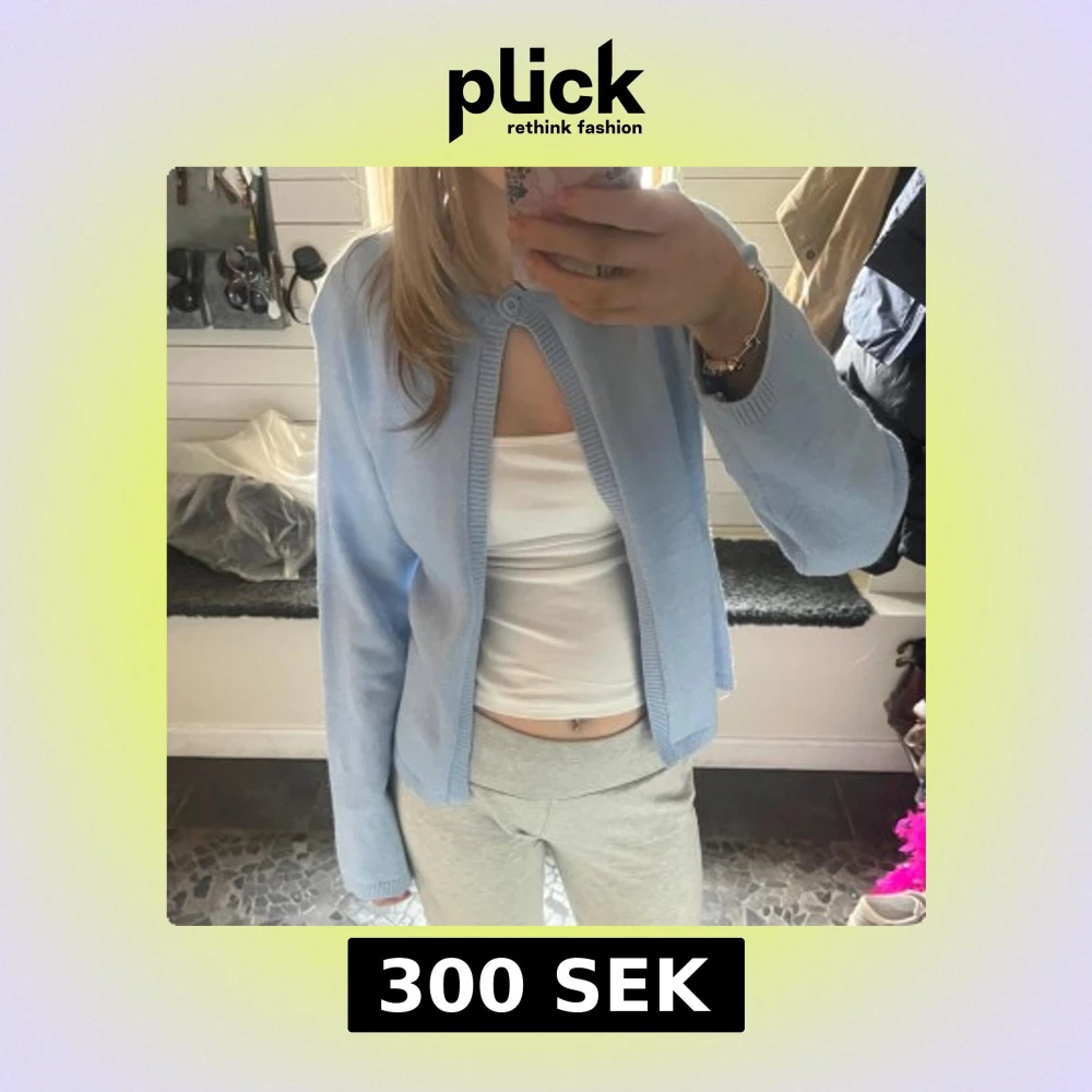 Säljer en ljusblå kofta med långa ärmar och ribbade muddar. Perfekt för en avslappnad stil. Koftan har en enkel design med knäppning framtill. Använt en gång💕