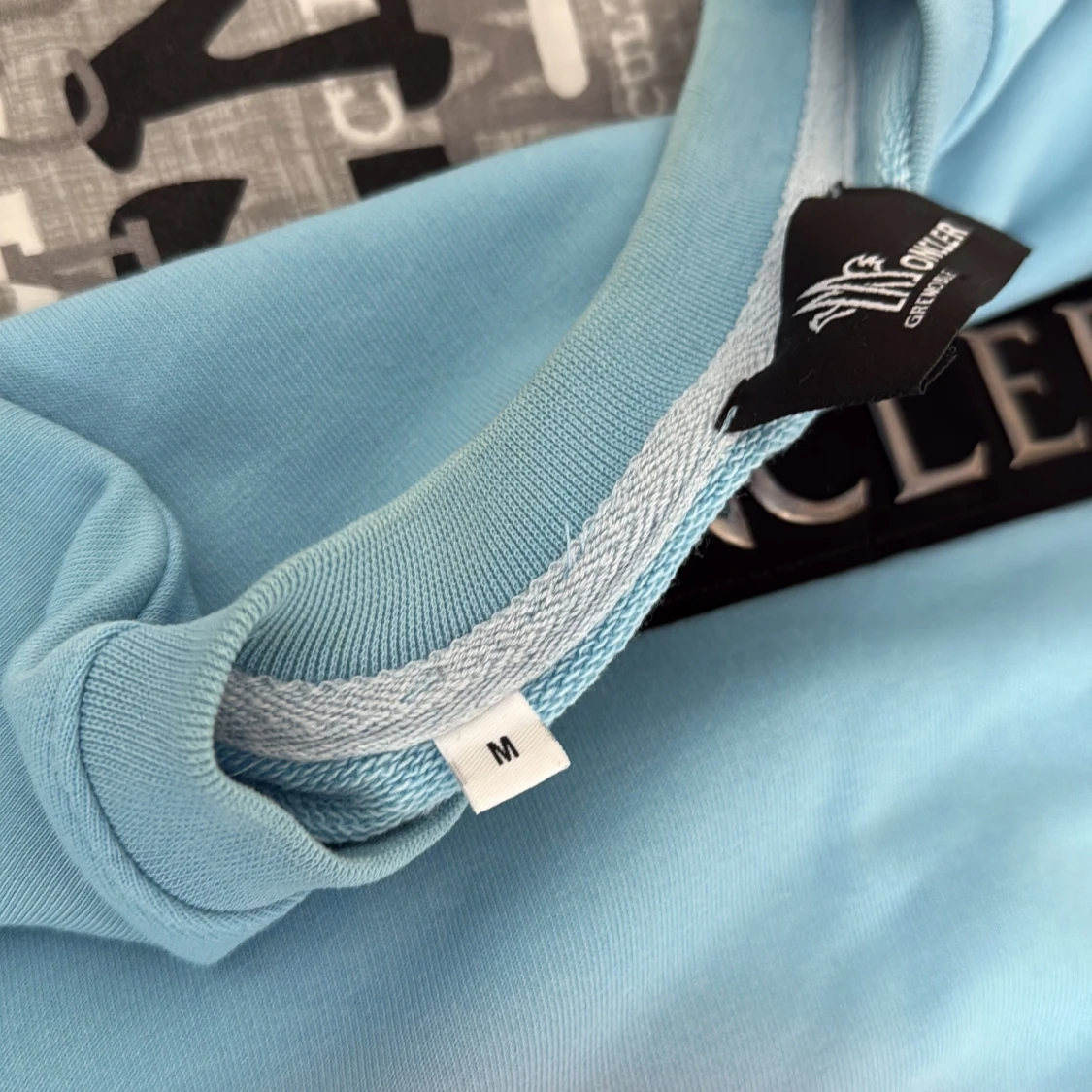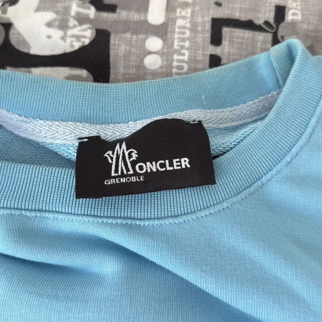 Snygg ljusblå sweatshirt från Moncler med klassisk rund hals och stort Moncler-tryck på bröstet. Tröjan är i mjuk bomull och har långa ärmar samt ribbade muddar vid ärmslut och nederkant. Perfekt för dig som gillar stilrena och exklusiva plagg.