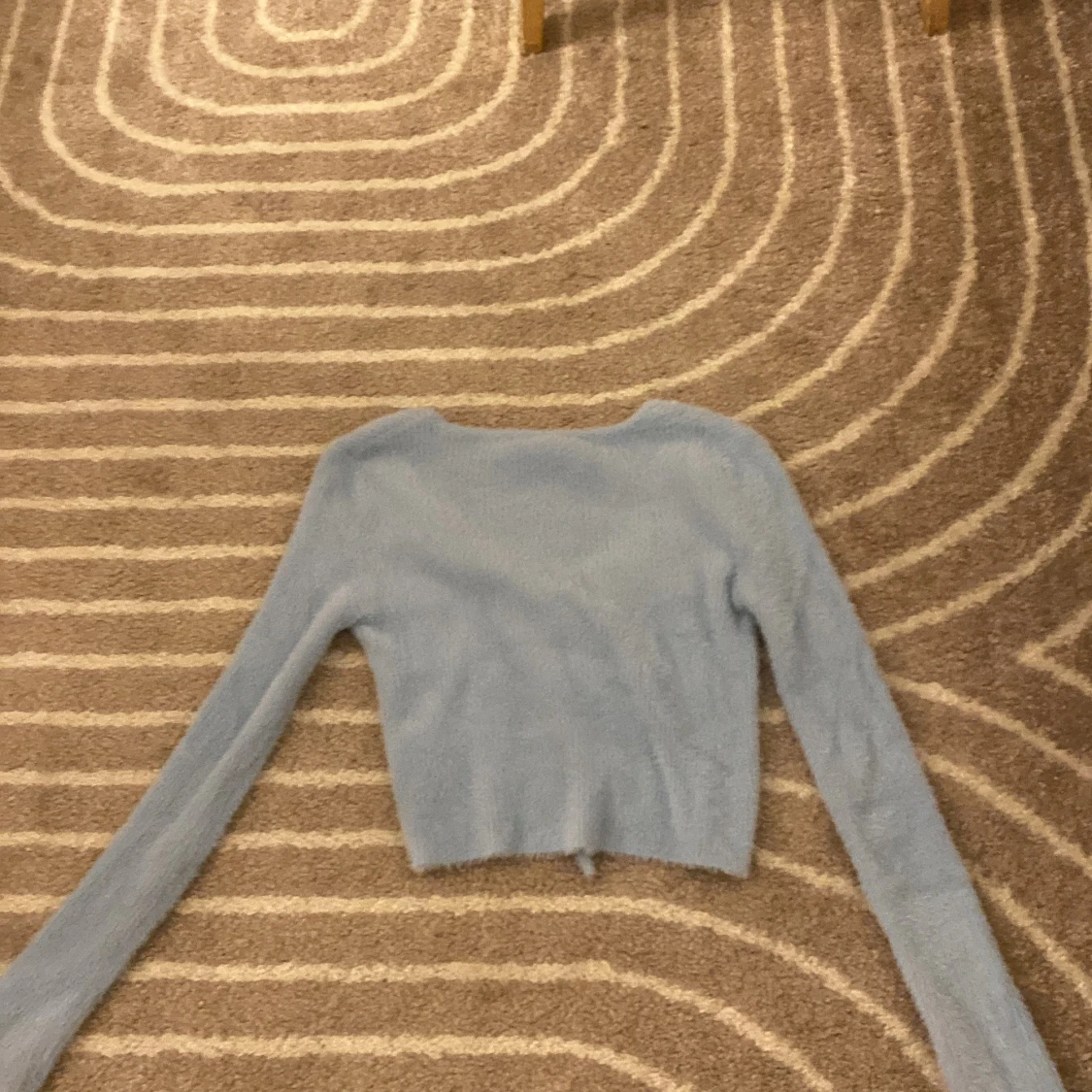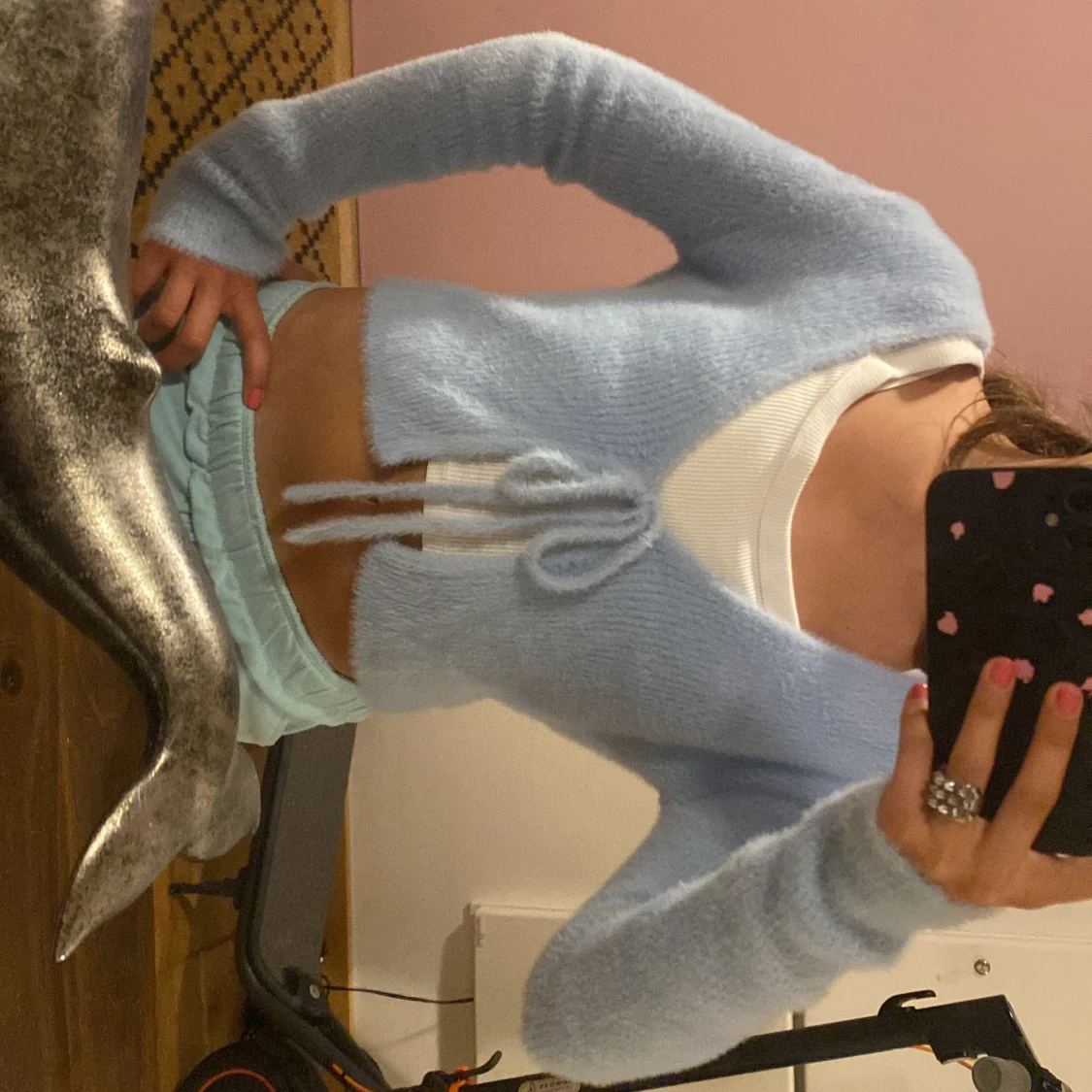 Supermjuk och fluffig ljusblå omlottkofta från Outfitters. Croppad modell med långa ärmar och knyt framtill.