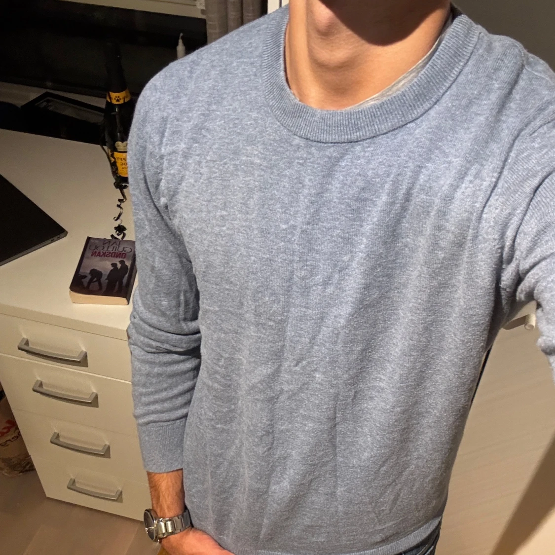 Snygg ljusblå stickad tröja med rund hals och långa ärmar. Tröjan har en enkel och clean design som passar perfekt till jeans. Mjuk och skön känsla, ribbade muddar vid ärmslut och nederkant. Perfekt för dig som gillar stilrena plagg.