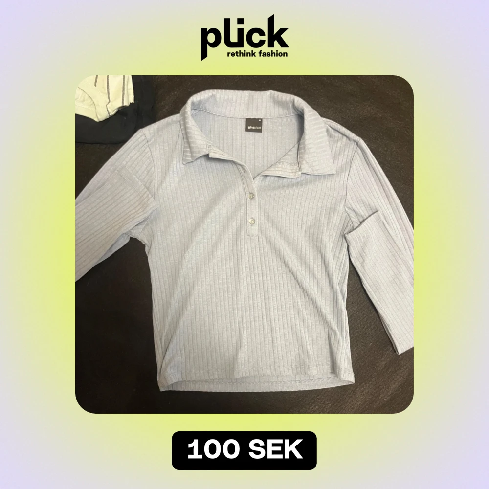 Säljer en ljusblå ribbad pikétröja från Gina tricot i mycket bra skick. Jätte söt tröja men den är för stor på mig nu. Den är mer blå i verkligheten💞
