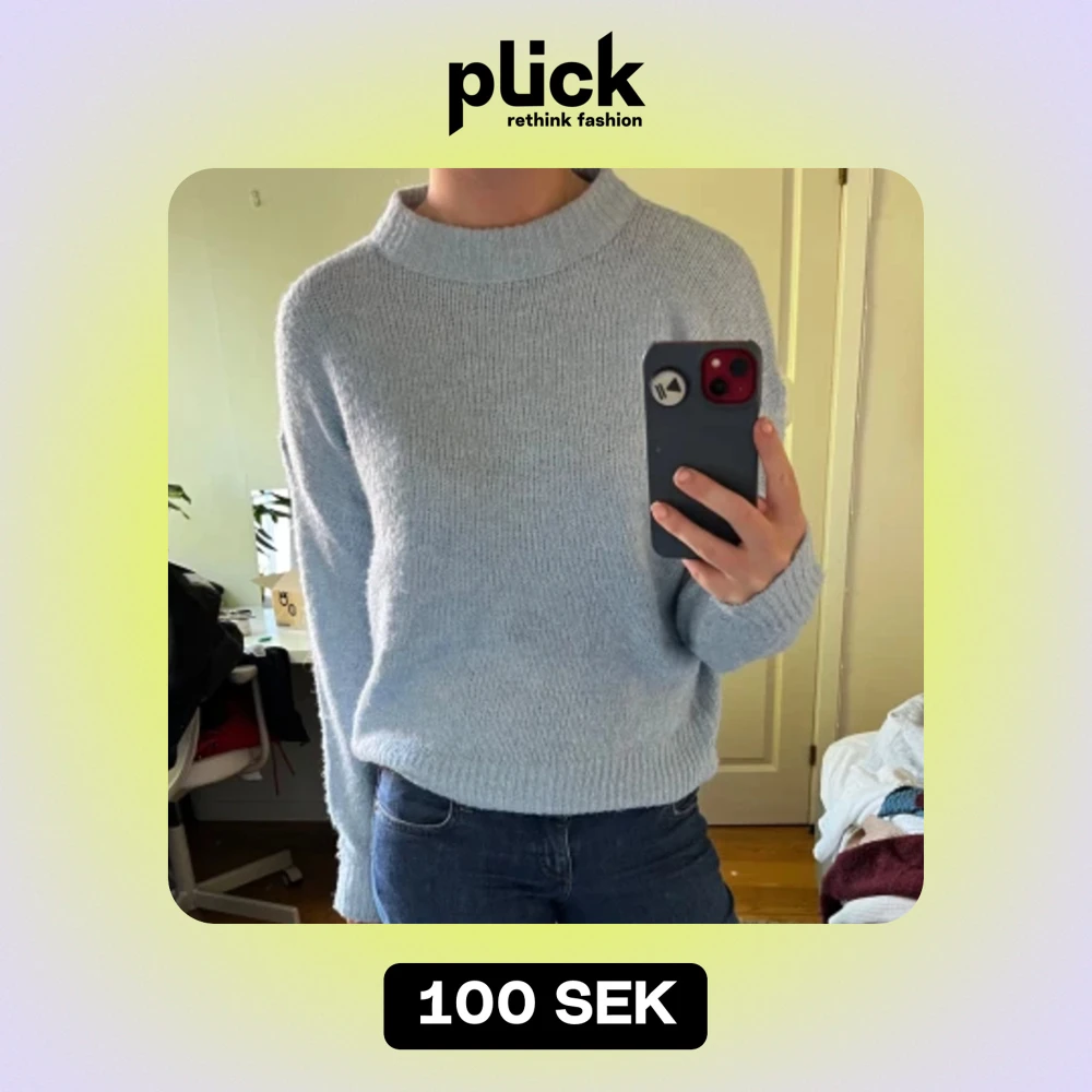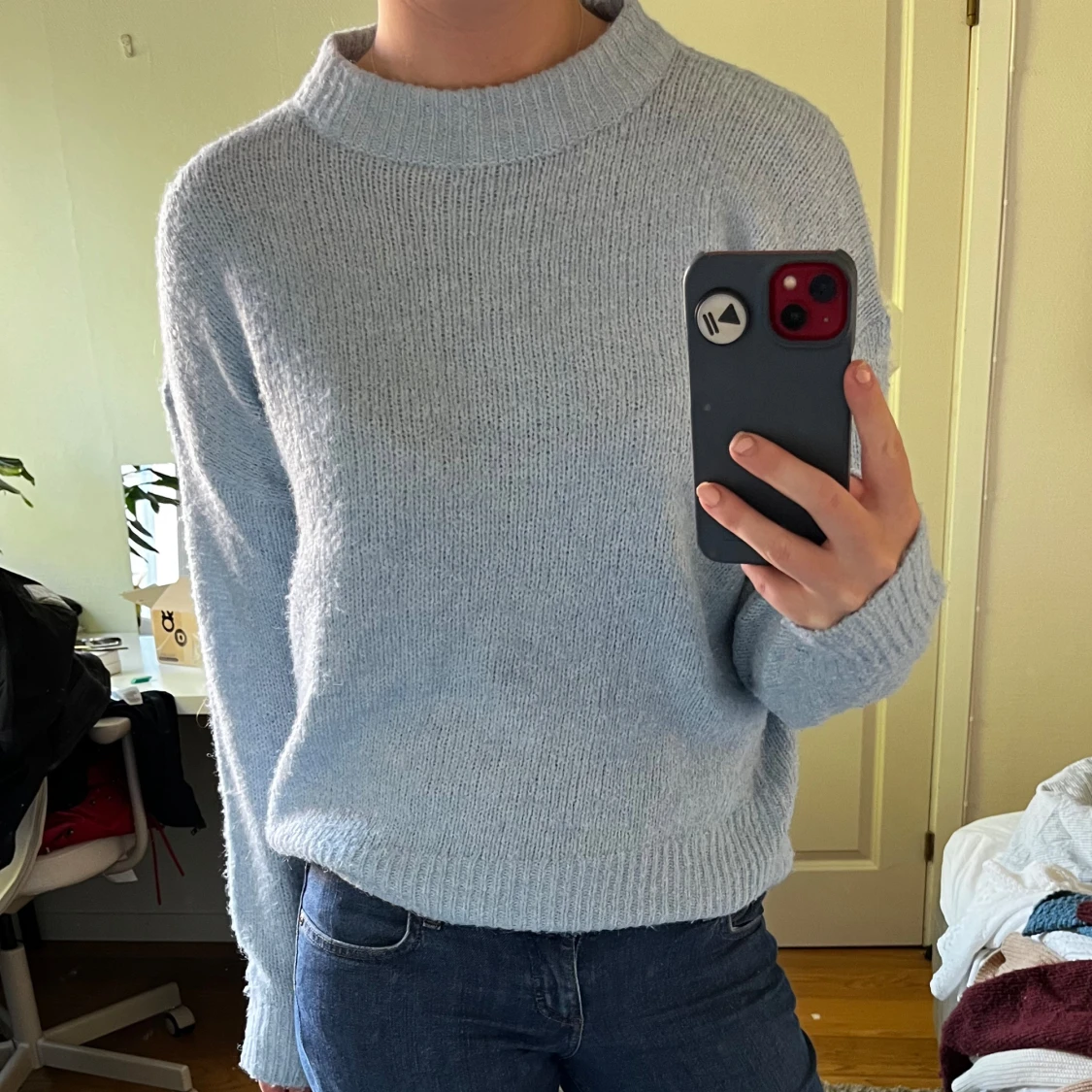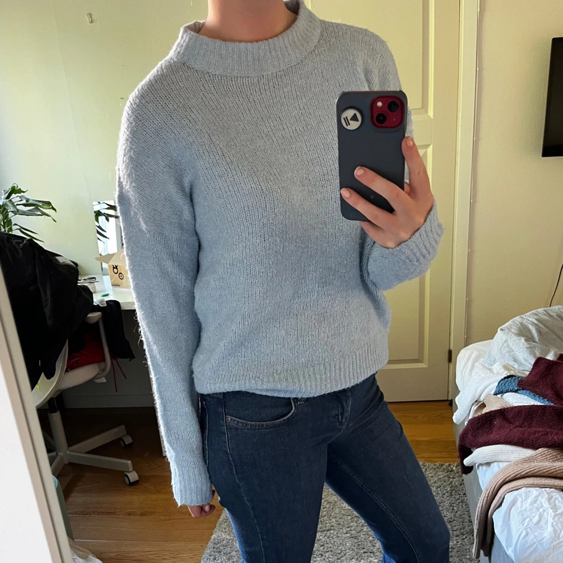 En snygg ljusblå stickad tröja i bra skick,(lite nopprig)