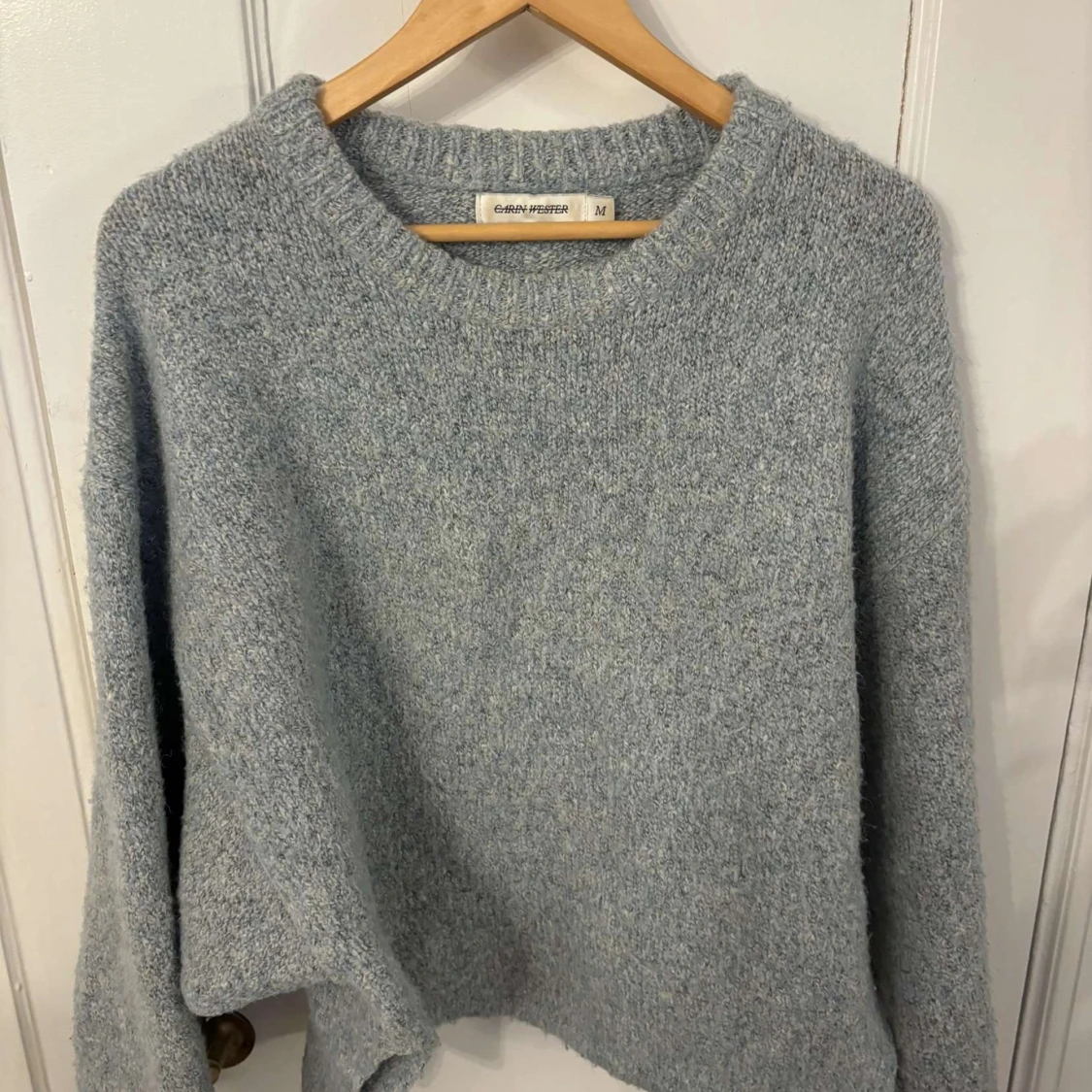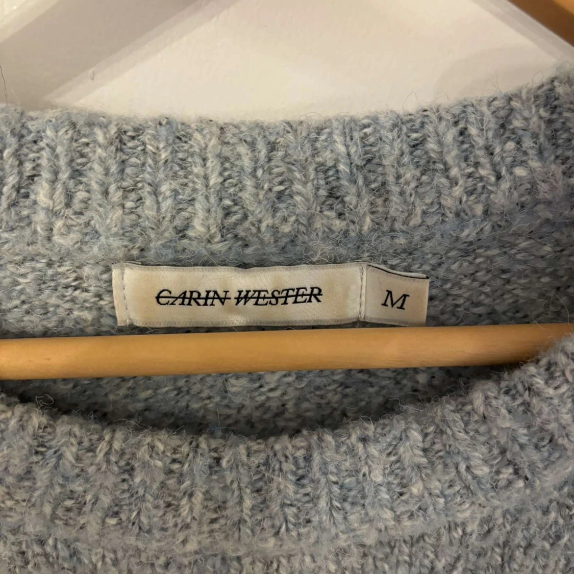Mysig ljusblå stickad tröja från Carin Wester. Perfekt för kyliga dagar med sin mjuka och bekväma passform. Tröjan har långa ärmar och en rund halsringning.
